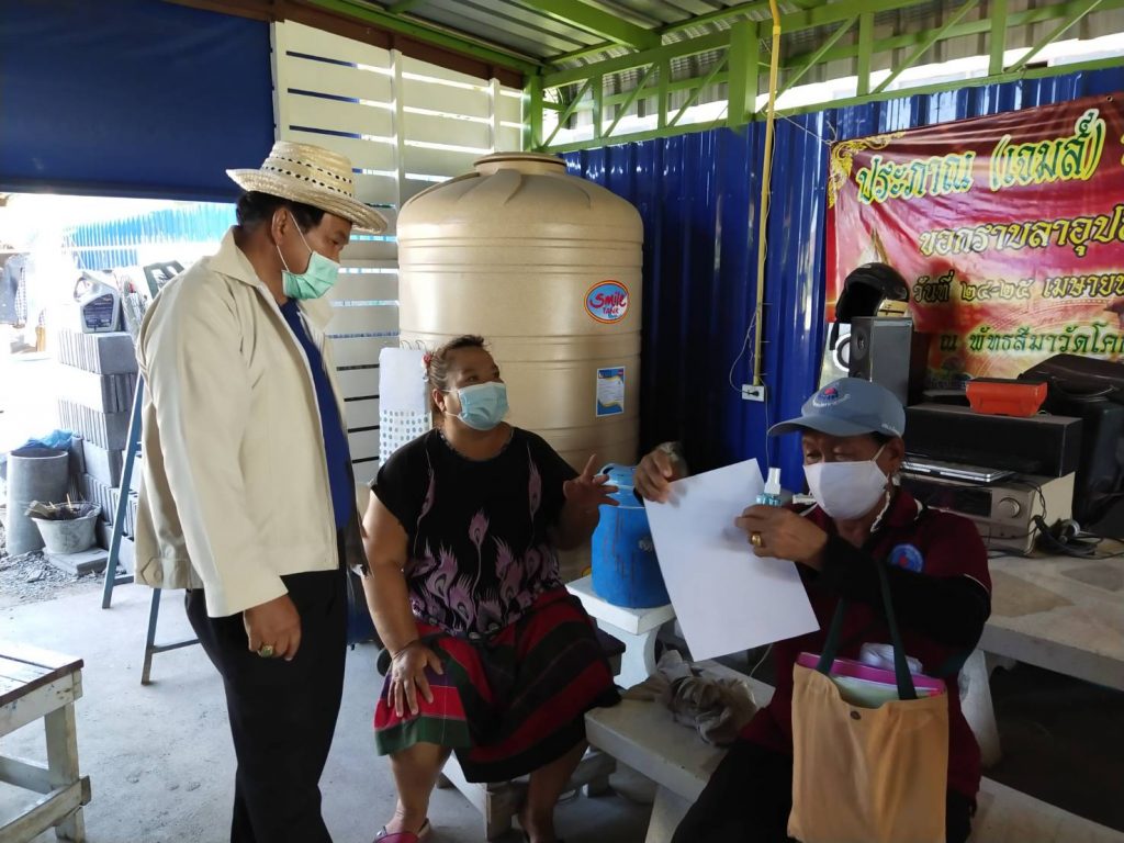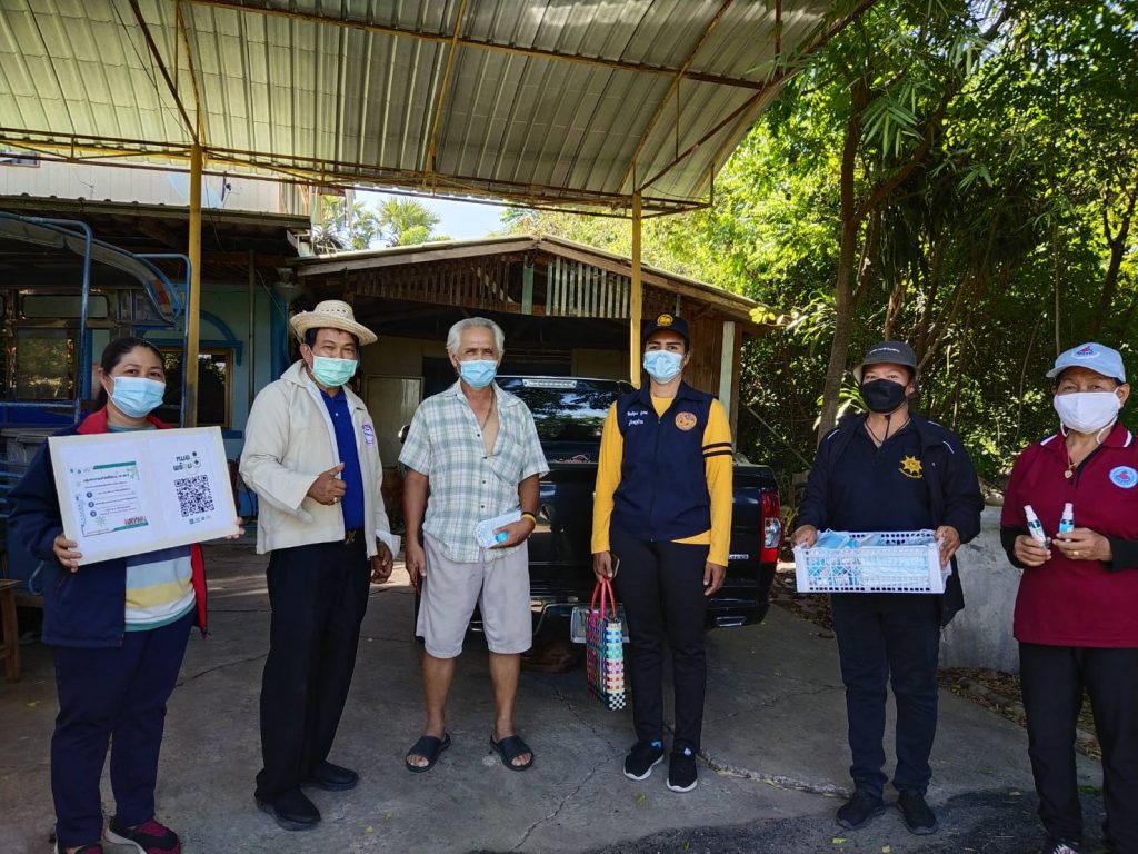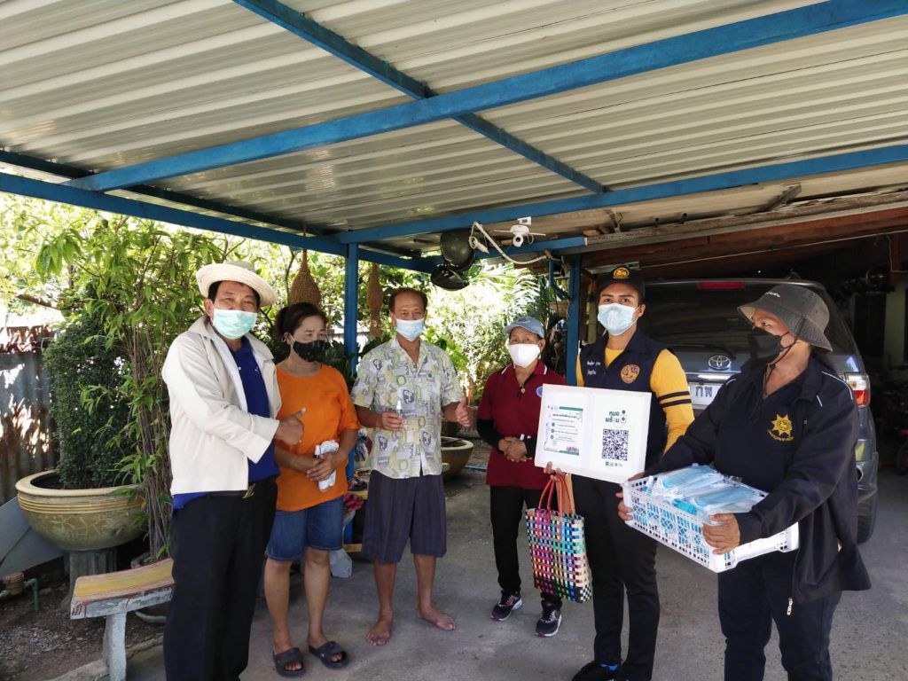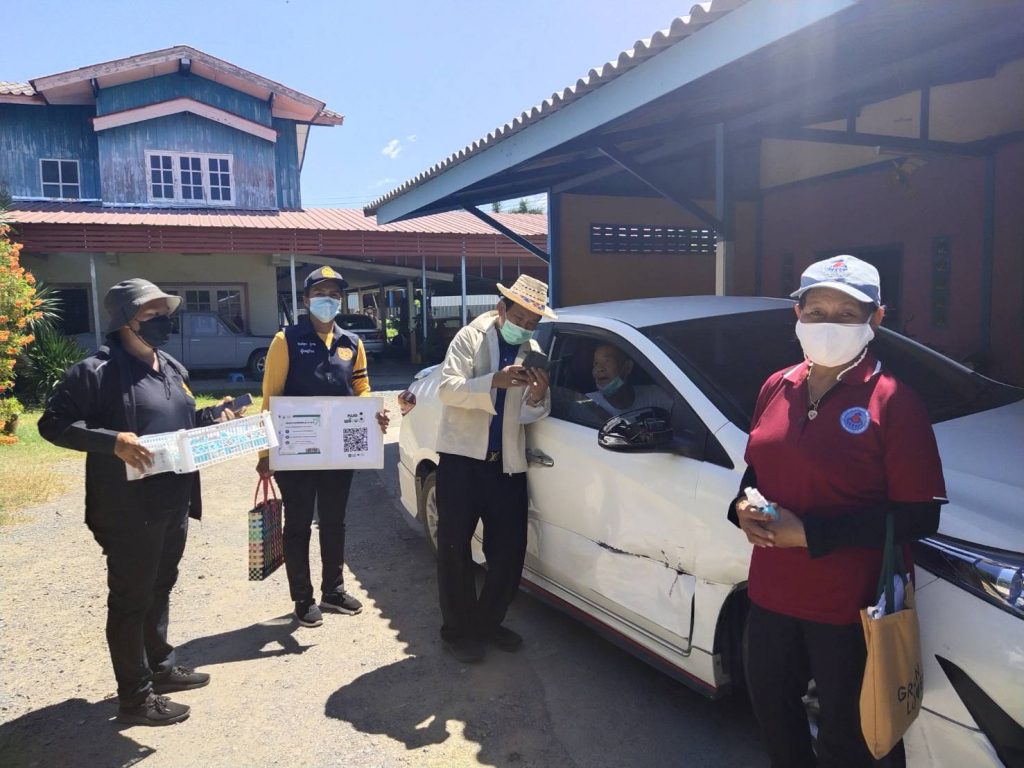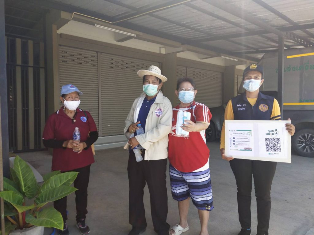 โดยได้นำ แบบฟอร์ม แนะนำแอพพลิเคชั่น (หมอพร้อม) การลงทะเบียน ไปให้การแนะนำ พร้อมสเปรยห์แอลกอฮอล์,