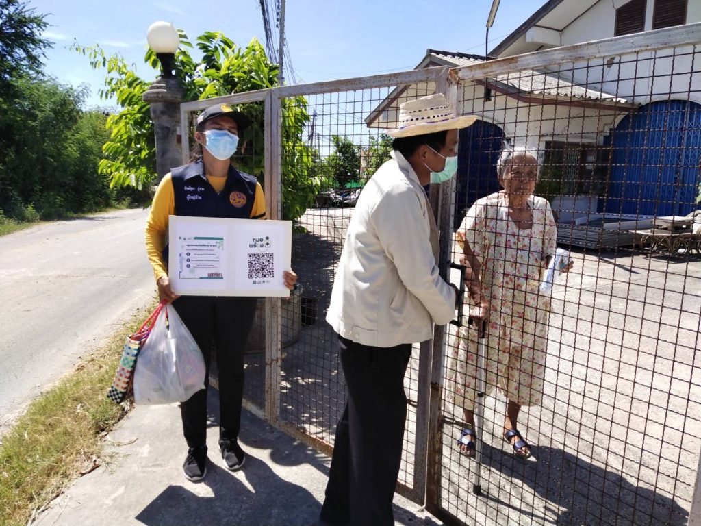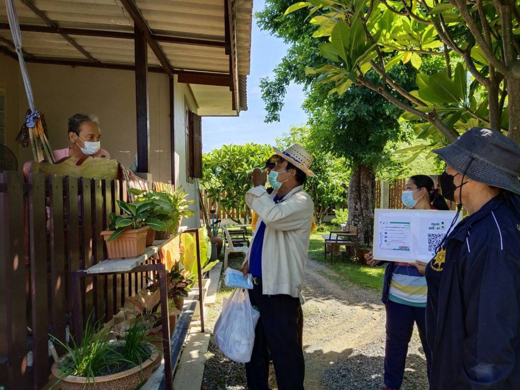 ลงพื้นที่ เคาะประตูบ้าน รณรงค์ ให้ความรู้ เชิญชวนประชาชน ลงทะเบียน ในการเข้ารับการฉีดวัคซีน ป้องกัน โรคโควิด-19 และเข้าตรวจเยี่ยม ผู้สูงอายุ และผู้ป่วยติดเตียง ที่ไม่สามารถช่วยเหลือตนเองได้