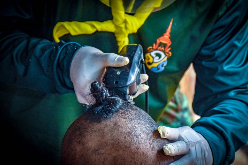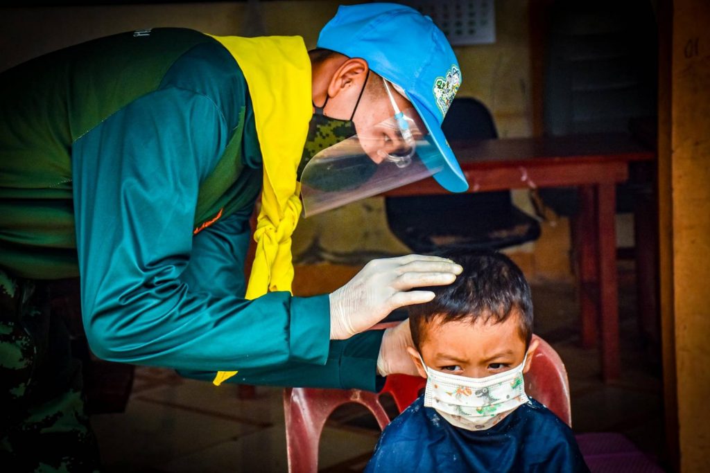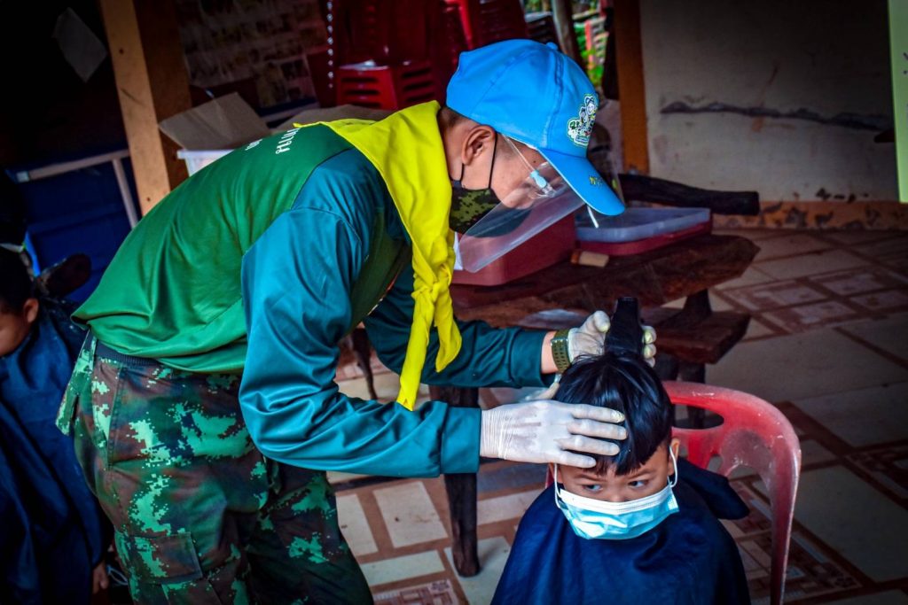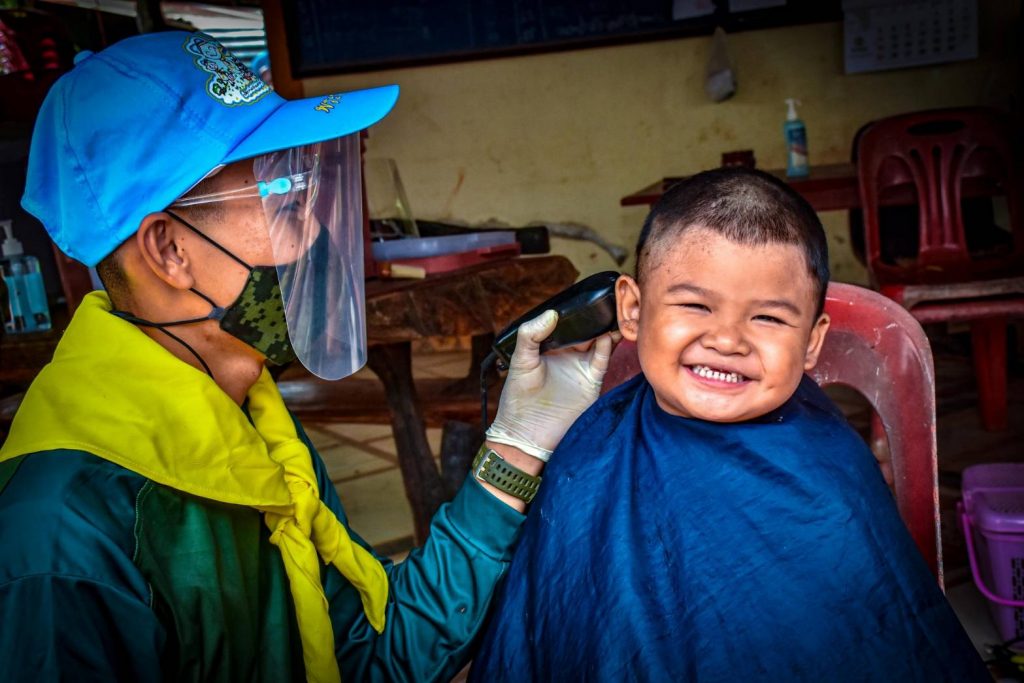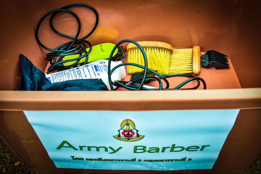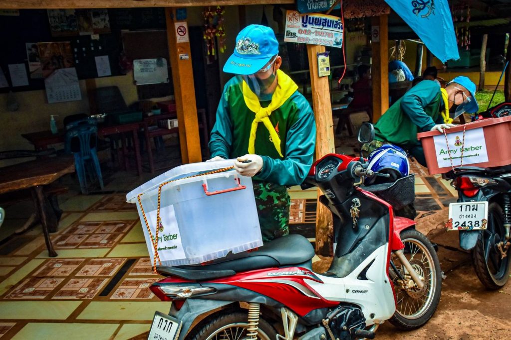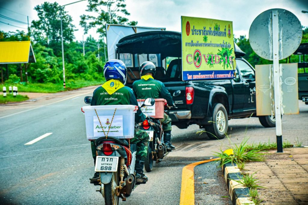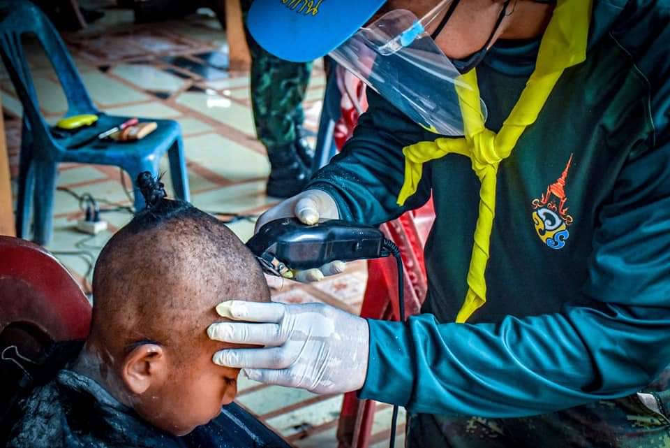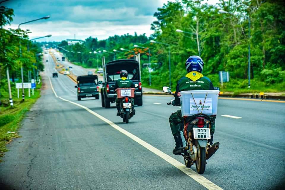 ที่ค่ายพระยอดเมืองขวาง ต.กุรุคุ อ.เมือง จ.นครพนม ผู้สื่อข่าวรายงานว่า กองพันทหารราบที่ 3 กรมทหารราบที่ 3 (ร.3 พัน.3) จัดกำลังพลจิตอาสา ดำเนินโครงการ “Army Barber Delivery” ออกให้บริการตัดผมเคลื่อนที่ฟรี (Army Barber) ให้กับเด็กๆ และประชาชนในพื้นที่ หมู่ 5 บ.ไทยสามัคคี ต.กุรุคุ อ.เมือง จ.นครพนม เป็นการช่วยเหลือดูแลประชาชน ในช่วงสถานณ์การเเพร่ระบาดของเชื้อไวรัสโควิด – 19 (ระลอกใหม่) เป็นการลดความเสี่ยง ลดความคับคั่งของประชาชนที่ต้องการใช้บริการร้านตัดผมและลดค่าครองชีพลดภาระค่าใช้จ่าย หลีกเลี่ยงการเดินทาง และสร้างความสุข อิ่มอกอิ่มใจให้กับประชาชน โดยยึดตามมาตรการ ของร้านตัดผม คือ กำลังพลจิตอาสาต้องสวมใส่ Face Shield หน้ากากอนามัย ถุงมือพร้อมวัดอุณหภูมิร่างกาย ผู้ใช้บริการวัดไข้ สวมใส่หน้ากาก และเว้นระยะห่าง ล้างมือและอุปกรณ์ด้วยแอลกอฮอล์ ไม่ให้บริการด้วยใบมีดโกน เพราะเพื่อความปลอดภัยให้กับกำลังพลและประชาชนที่เข้ารับบริการในช่วงสถานณ์การเเพร่ระบาดของเชื้อไวรัสโควิด – 19 (ระลอกใหม่)