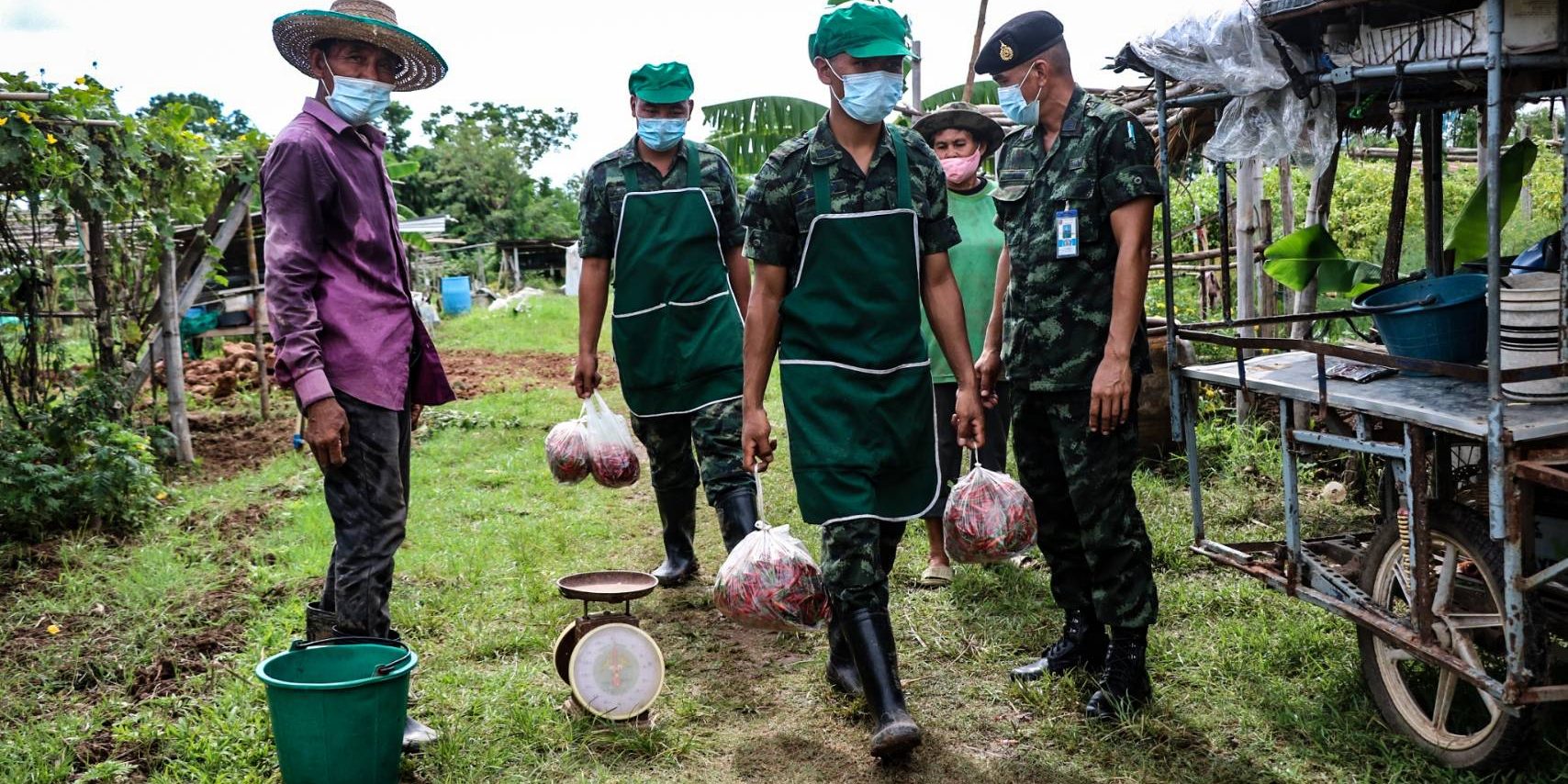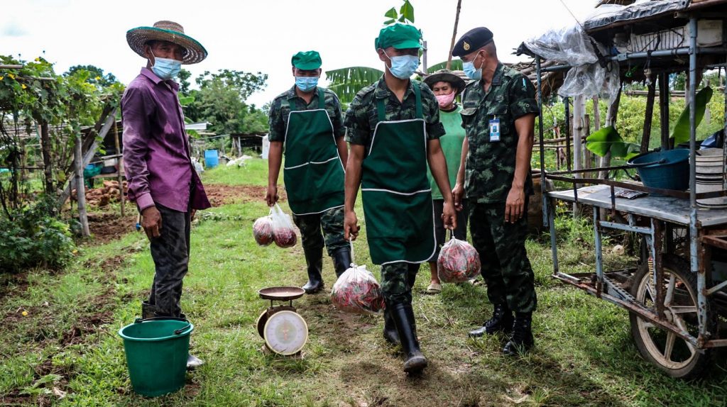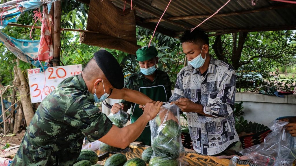 โดยทางด้านกองพันทหารราบที่ 2 กรมหารราบที่ 8 ค่ายมหาศักดิพลเสพ อ.ชุมแพ จ.ขอนแก่น ซึ่งเป็นหน่วยขึ้นตรงของกรมหารราบที่ 8 พันโท อุเทน จีนทองหลาง ผู้บังคับกองพันทหารราบที่ 2 กรมหารราบที่ 8 (ผบ.ร.8 พัน.2 ) ได้สนองตอบนโยบายกองทัพบกและผู้บังคับบัญชาระดับสูงทันทีได้จัดกำลังพลลงพื้นที่รีบดำเนินการเข้าช่วยเหลือประชาชน ในการรับลงพื้นที่ช่วยเกษตรกรชุมชนรอบค่ายมหาศักดิพลเสพ จากกลุ่ม “วิสาหกิจชุมชนระบบธรรมชาติสู่เศรษฐกิจพอเพียง” บ้านโนนคอม หมู่ 1 ตำบลโนนคอม อำเภอภูผาม่าน และรับซื้อแตงโม จากร้านค้าของเกษตรกรชุมชน บ้านหนองเขียด หมู่ 9 ตำบลหนองเขียด อำเภอชุมแพ จังหวัดขอนแก่น “ ตามโครงการกองทัพบก.”น้องทหารอิ่มท้อง พี่น้องเกษตรกรอิ่มใจ” เพื่อช่วยบรรเทาความเดือดร้อน ของเกษตรกรที่ได้รับผลกระทบจากสถานการณ์การแพร่ระบาดโรคโควิด-19 (ระลอก 3)และไม่สามารถนำพืชผลทางการเกษตรที่ปลูกไว้ ออกจำหน่ายตามแหล่งรับซื้อหรือท้องตลาดได้ตามปกติ