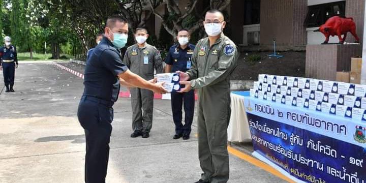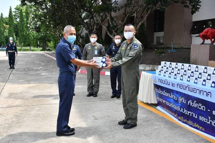นาวาอากาศเอก ชวภณ ยิ้มพงษ์ ผู้บังคับการกองบิน ๒ รองผู้บังคับการ เสนาธิการ กองบิน ๒ มอบหน้ากากอนามัยให้กับสารวัตรเขตบ้านพักอาศัยเพื่อนำไปแจกจ่ายให้กับข้าราชการ และครอบครัวกองบิน ๒ เพื่อเป็นการป้องการการแพร่ระบาดของเชื้อ Covid-19 ณ กองบังคับการ กองบิน ๒