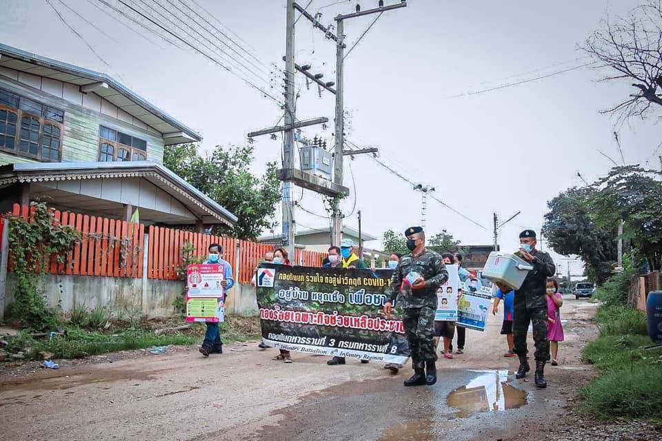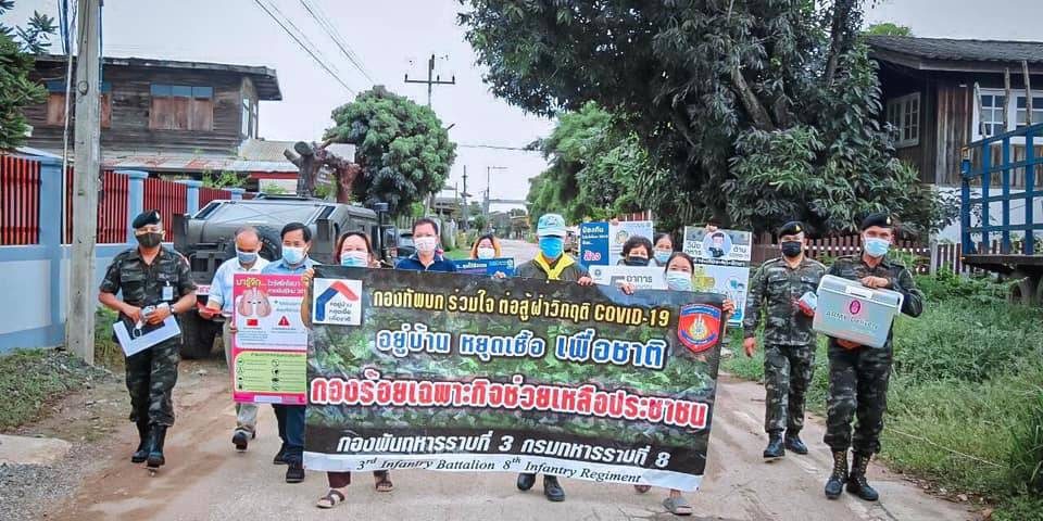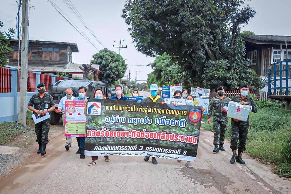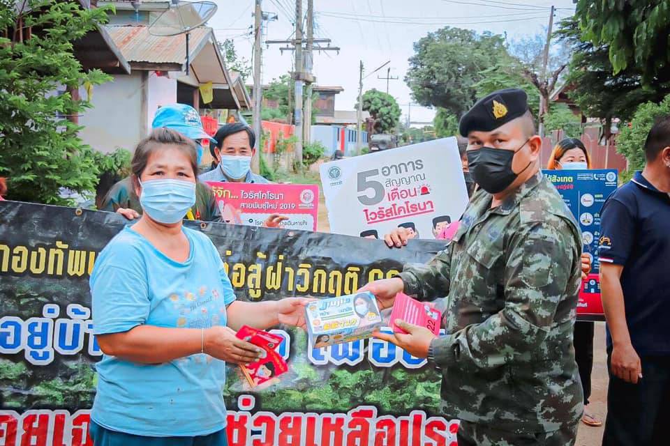 โดยทางด้านกองพันทหารราบที่ 3 กรมทหารราบที่ 8 ค่ายสีหราชเดไชย อ.เมือง จ.ขอนก่น พันโท อุดมการณ์ ศรีแขไตร ผู้บังคับกองพันทหารราบที่ 3 กรมทหารราบที่ 8 (ผบ.ร.8 พัน 3 ) ได้จัดชุดหมอทหารเดินเท้า และชุดปฏิบัติการกิจการพลเรือน ร่วมกับส่วนราชการในพื้นที่ พบปะเยี่ยมเยียนพี่น้องประชาชน ประชาสัมพันธ์ลงพื้นที่ให้ความรู้และสร้างความเข้าใจที่ถูกต้องเกี่ยวกับการการแพร่ระบาดเชื้อไวรัส covid-19 ระลอกใหม่ พร้อมแจกหน้ากากอนามัยและ คู่มือ “โคโรน่า 19 ป้องกันได้” แนะนำการล้างมือ หลีกเลี่ยงการเดินทางไปพื้นที่เสี่ยง ให้กับประชาชน บ.สระแก้ว ม.2 ต.หนองแก อ.ศรีบุญเรือง จ.หนองบัวลำภู เพื่อป้องการแพร่ระบาดเชื้อไวรัส COVID -19 (ระลอกใหม่)