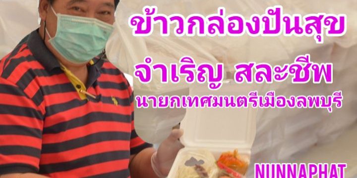 ข้าวกล่องปันสุข ของนายจําเริญสละชีพ นายกเทศมนตรีเมืองลพบุรี ได้ทุ่มงบส่วนตัวตัดสร้างโรงทาน ปันสุขปันน้ำใจให้คนลพบุรี ช่วง covid 19 แจกอาหารข้าวกล่องน้ำดื่มจันทร์ถึงศุกร์วันเวลาราชการ