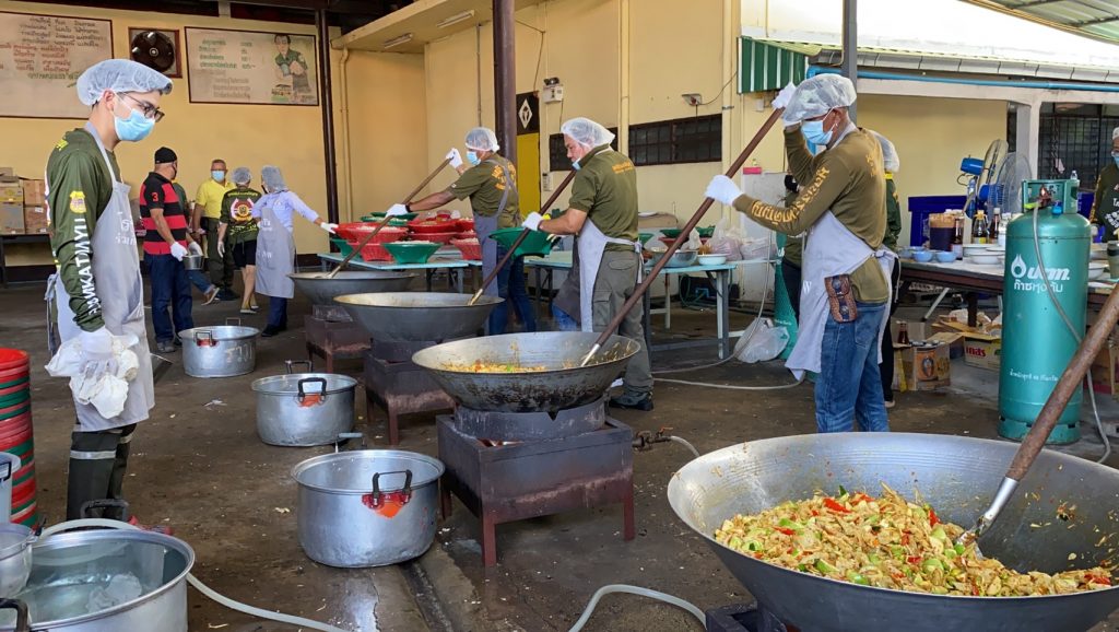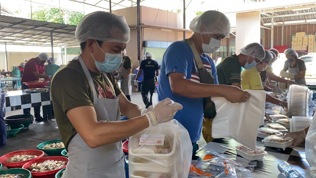 โรงครัวสนาม Rku.จุดที่ 1 ในวัดเลาพระราม 2 สนับสนุนโรงพยาบาลสนามในฝั่งธน