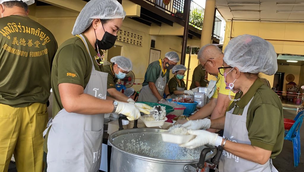 โรงครัวสนาม Rku.จุดที่ 3 สำนักงานใหญ่มูลนิธิร่วมกตัญญู กล้วยน้ำไท สนับสนุน ช่วยแรงงานและได้รับผลกระทบในพื้นที่คลองเตย
