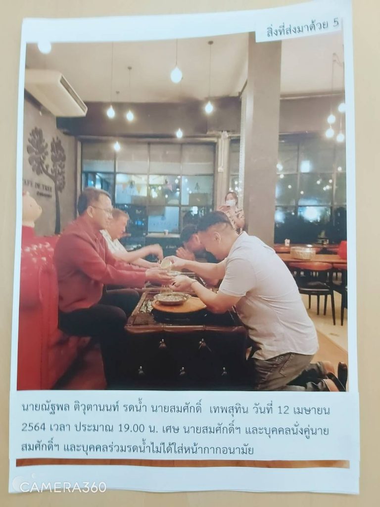 จากกรณี เมื่อวันที่ 12 เมษายน 2564 เวลาประมาณ 19:00 น. นายสมศักดิ์ฯ และ คณะ ได้เดินทางไปที่ร้านคาเฟ่ เดอ ทรี อ.เมือง จ.สุโขทัย ร่วมกิจกรรมชุมนุม มีการจัดรดน้ำตามประเพณีสงกรานต์ งานเลี้ยงสังสรรค์ และ มีการร้องเพลงคาราโอเกะ ดื่มไวน์ โดยไม่ใส่หน้ากากอนามัย มีผู้ร่วมงาน ประมาณ 21 คน อันเป็นการกระทำผิดกฎหมายหลายฉบับ เป็นการร่วมชุมนุมฝ่าฝืนพระราชกำหนดในสถานการณ์ฉุกเฉินพ.ศ 2548 มั่วสุมกันตั้งแต่ 10 คนขึ้นไป ผิดพระราชบัญญัติโรคติดต่อ พ.ศ.2558 ฝ่าฝืนประกาศหรือคำสั่งในสถานการณ์ covid-19 ของ นายกรัฐมนตรีฯ และจังหวัดสุโขทัย กระทบกระเทือนต่อจิตใจของประชาชนที่เคารพกฎหมายทั้งประเทศ