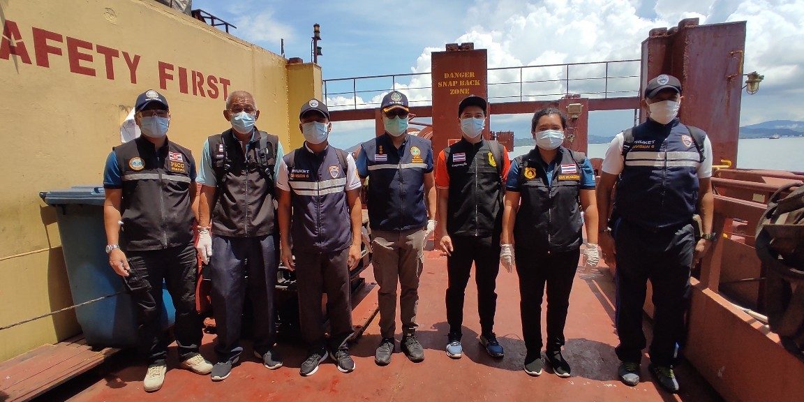 การศูนย์อำนวยการรักษาผลประโยชน์ของชาติทางทะเลภาค 3 โดย น.อ.เกรียงไกร ลายเงิน หน.ศคท.จว.ภก. บูรณาการ ด่านควบคุมโรคติดต่อระหว่างประเทศท่าเรือภูเก็ต ด่านศุลกากรภูเก็ต และตรวจคนเข้าเมืองจังหวัดภูเก็ต ร่วมตรวจเรือสินค้า M.V.SKYLINE สัญชาติเนเธอร์แลนด์ เข้าจอดทอดสมอบริเวณอ่าวมะขาม จว.ภูเก็ต เพื่อรับส่งสินค้า เดินทางมาจาก (Last Port) สิงคโปร์ โดยได้คัดกรองตรวจสอบวัดไข้ลูกเรือจำนวน 16 คน เพื่อเป็นการเฝ้าระวังป้องกันการแพร่ระบาดของโรค COVID-19 และเน้นย้ำให้เจ้าของเรือและลูกเรือห้ามลงจากเรือ รวมทั้งให้ปฏิบัติตามมาตรการในการป้องกันโรค COVID-19 อย่างเคร่งครัด ผลการปฏิบัติไม่พบผู้มีอุณหภูมิสูงกว่า37.5 องศาเซลเซียส หรือต้องสงสัยติดเชื้อโรค COVID – 19 ศคท.จว.ภก. ศรชล ภาค ๓