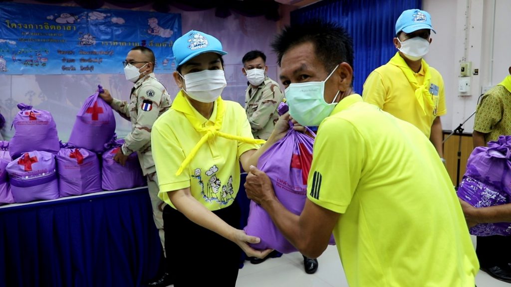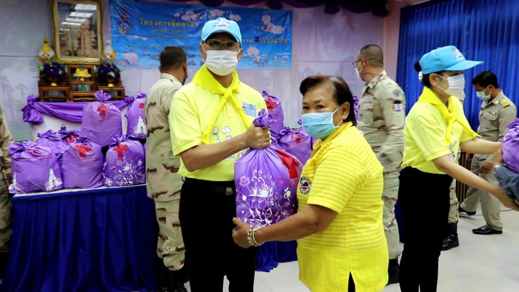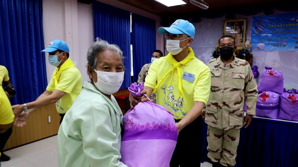 ในพิธีผู้ว่าราชการจังหวัดสิงห์บุรีได้กล่าวสำนึกในพระมหากรุณาธิคุณ จากนั้นได้นำผู้เข้าร่วมพิธีกล่าวคำปฏิญาณตน “เราทำความดีด้วยหัวใจ” โดยพร้อมเพียงกัน 3 ครั้ง ก่อนที่จะทำการมอบถุงยังชีพที่ได้รับมาจากเหล่ากาชาดจังหวัดสิงห์บุรี ให้กับผู้ด้อยโอกาส ผู้พิการจำนวน 50 ชุด ซึ่งก็สร้างความปิติยินดีกับผู้ที่มารับถุงยังชีพเป็นอย่างมากทุกคน
