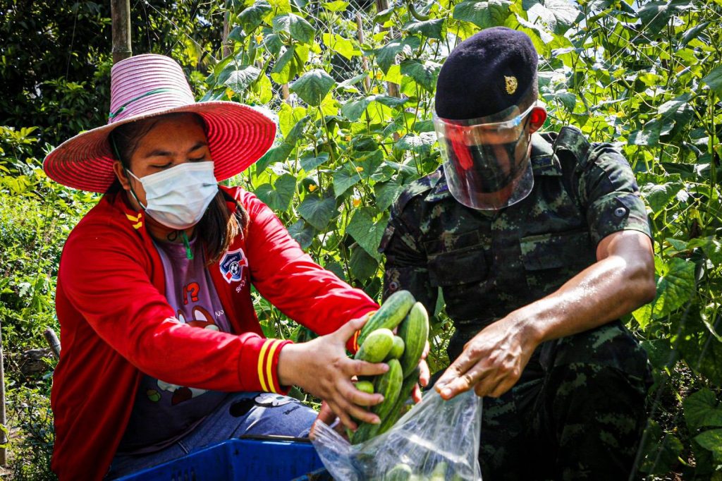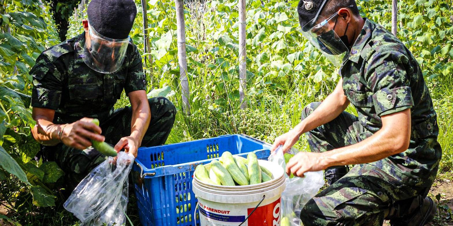 โดยทางด้านกองพันทหารราบที่ 1 กรมทหารราบที่ 8 ค่ายศรีสองรัก อ.เมือง จ.เลย พันโท ประดิษฐ์ พรมเรียน ผู้บังคับกองพันทหารราบที่ 1 กรมทหารราบที่ 8 (ผบ.ร.8 พัน 1 )ได้สนองตอบนโยบาย ผบ.ร.8 และ กองทัพบกอย่างต่อเนื่อง จัดกำลังพลลงพื้นที่ เข้ารับซื้อแตงกวา จำนวน 50 กิโลกรัม จากคุณธนาพร มาแก้ว เกษตรกรผู้ปลูกแตงกวา บ้านบ้านโสกใหม่ หมู่ 2 ต.เขาแก้ว อ.เชียงคาน จ.เลย เพื่อนำมาประกอบเป็นเมนูอาหารให้กับกำลังพลทหารกองประจำการของหน่วยได้รับประทาน และยังเป็นการช่วยเหลือเกษตรกรให้มีรายได้เพิ่ม ภายใต้สถานการณ์ที่มีการแพร่ระบาดของโรคไวรัสโควิด-19 “ ตามโครงการกองทัพบก.”น้องทหารอิ่มท้อง พี่น้องเกษตรกรอิ่มใจ” เพื่อช่วยบรรเทาความเดือดร้อน ของเกษตรกรที่ได้รับผลกระทบจากสถานการณ์การแพร่ระบาดโรคโควิด-19 (ระลอก 3)และไม่สามารถนำพืชผลทางการเกษตรที่ปลูกไว้ ออกจำหน่ายตามแหล่งรับซื้อหรือท้องตลาดได้ตามปกติ