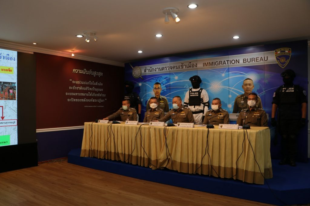 วันที่ 4 มิ.ย.64 เวลา 10.30 น.ณ ห้องอเนกประสงค์ ชั้น 1 อาคาร 1 สตม.ซ.สวนพลู แขวงทุ่งมหาเมฆ เขตสาทร กรุงเทพมหานคร : พล.ต.ต.ณฐพล แสวงกิจ รอง ผบช.สตม. พร้อมด้วย พล.ต.ต.สิทธิชัย โล่กันภัย,พล.ต.ต.อาชยน ไกรทอง,พล.ต.ต.ศิลปคมณ์ เอี่ยมวงศ์ รอง ผบช.สตม.,พล.ต.ต.วีรพล เจริญศิริ ผบก.ตม.2,พ.ต.อ.รุ่งศักดิ์ แสงเสียงฟ้า รอง ผบก.ตม.2 และ พ.ต.อ.ชัยธนันท์ จิรปิยเศรษฐ์ ผกก.สส.ปป.บก.ตม.2 ร่วมแถลงข่าว ดังนี้