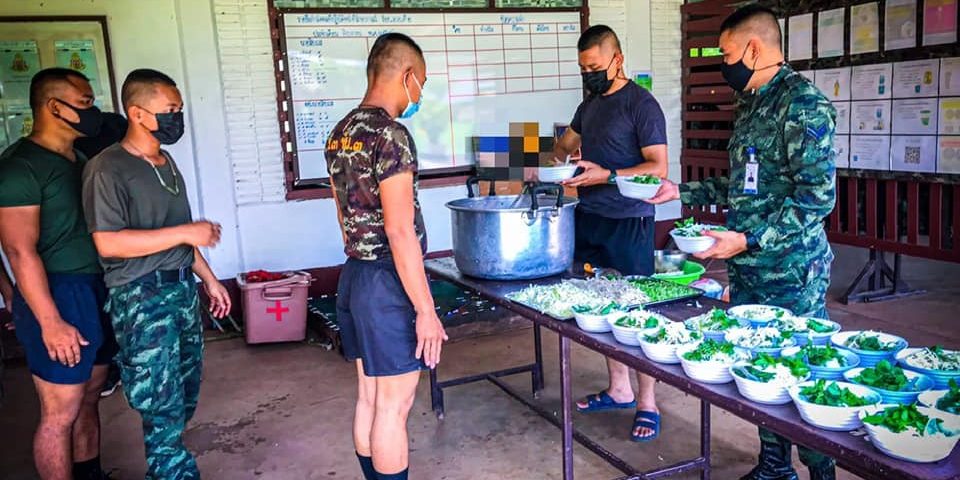 _ ที่ค่ายพระยอดเมืองขวาง ต.กุรุคุ อ.เมือง จ.นครพนม ผู้สื่อข่าวรายงานว่า จากสัญญาณเตือนการระบาดไวรัสโควิด-19 ระลอก 3 ที่กลายพันธุ์ในรอบนี้ถือว่าหนักและรุนแรงมากกว่าเดิม ติดง่ายกว่ารอบแรก รอบสองหลายเท่า ส่งผลให้จำนวนยอดผู้ติดเชื้อเพิ่มขึ้นอย่างรวดเร็ว และลุกลามไปทั่วทุกจังหวัด กระจายทุกกลุ่ม ทุกวัย ทั้งเด็ก วัยรุ่นหนุ่มสาว จนถึงผู้สูงอายุ ส่อทำให้ความเป็นอยู่ของประชาชนอยู่ในขั้นวิกฤติ และไม่มีแนวโน้มจะหยุดลง ดังนั้นการกลับมาระบาดรอบนี้จึงน่าเป็นห่วง เพราะเชื้อที่สายพันธุ์ใหม่แพร่ได้ง่าย ลุกลามได้ไว จนทำให้ตัวเลขผู้ป่วยติดเชื้อพุ่งสูงล่าสุด กองทัพ ต้องประกาศกฎเหล็กเพื่อป้องกันการระบาดในกำลังพลด้วยกัน โดยให้ยึดถืออย่างเคร่งครัด และปฏิบัติตามระเบียบที่ได้มอบย้ำเป็นนโยบาย เพื่อความปลอดภัยต่อตัวท่านและหน่วยงาน รวมถึงครอบครัวในส่วนของกองทัพบก โดย กองพันทหารราบที่ 3 กรมทหารราบที่ 3 จึงมีมาตรการป้องกันและควบคุมการแพร่ระบาดของโรคโควิด-19 โดยการงดให้กำลังพลลาพัก เพื่อไม่ให้กำลังพลออกไปนอกพื้นที่ เป็นการป้องกันการแพร่ระบาดของโรคโควิด-19 ในหน่วยทหาร หากไม่มีสถานการณ์ของการระบาดนั้น หน่วยก็จะให้น้องๆทหารลาพักตามปกติ แต่เนื่องจากสถานการณ์โรคระบาดโควิด-19 จึงมีความจำเป็นต้องงดพักกำลังพล เพื่อป้องกันการแพร่ระบาดของโรคโควิด-19 อย่างเคร่งครัด _โดยทางด้านพันโท ศรณณัฐ นวลมณี ผู้บังคับกองพันทหารราบที่ 3 กรมทหารราบที่ 3 (ผบ.ร.3 พัน 3) ได้เล็งเห็นถึงขวัญกำลังใจของกำลังพลที่ไม่ได้กลับไปเยี่ยมครอบครัว จึงมีนโยบายให้หน่วยจัดหาอาหารพิเศษให้กับกำลังพลทหารกองประจำการ เพื่อเป็นขวัญกำลังใจให้กับน้องๆทหาร ซึ่งถือเป็นการแสดงออกถึงความห่วงใย และใส่ใจต่อกำลังพล ในห้วงที่กำลังพลไม่ได้กลับไปเยี่ยมครอบครัว ทำให้กำลังพลที่ปฏิบัติหน้าที่ มีขวัญและกำลังใจที่ดีขึ้นในช่วงสถานการณ์การแพร่ระบาดของเชื้อไวรัสโคโรนา 2019