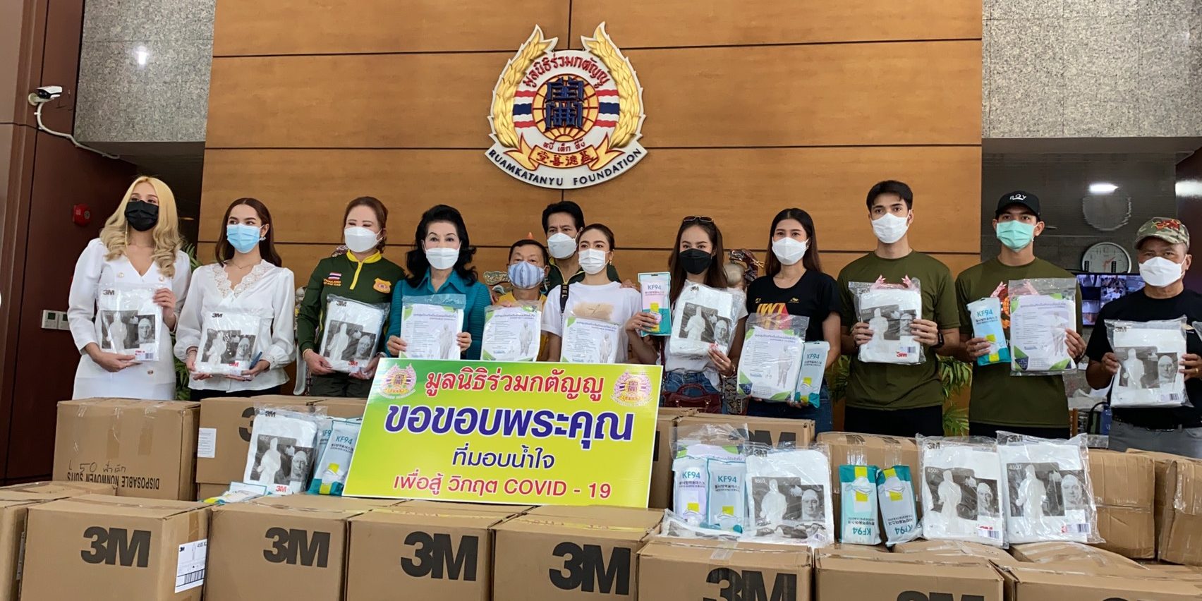 เมื่อวันที่ 4 มิ.ย.64 ที่สำนักงานบางพลี : คุณรัตนา สมสกุลรุ่งเรือง ประธานมูลนิธิร่วมกตัญญู พร้อมด้วยคุณบิณฑ์ บรรลือฤทธิ์ รับมอบชุดป้องกันส่วนบุคคลแบบเต็มตัว จำนวน 2,000 ชุด พร้อมด้วยหน้ากากอนามัย และเจลแอลกอฮอล์ จากบริษัทโคลีเซี่ยม อินเตอร์กรุ๊ป โดย คุณพรพิมล มั่นฤทัย ผู้ผลิตละคร “เผาขน” พร้อมด้วยทีมนักแสดง นำโดยพระเอกหนุ่ม เข้ม-หัสวีร์ ภัคพงษ์ไพศาล และนางเอกสาวสวย การ์ตูน-ณัฐฌา บุญปอง กับ แก้ม-ญาณิศา ธีราธรธรรม ร่วมด้วยนักแสดง พัฒนศักดิ์ พงษ์พันธุ์,กมลรัตน์ ทานนท์,อรณัชชา แสนสุวรรณ,ชมพูนุช พึ่งผล,อิงชนก ประศาสตร์ และทองก้อน ศรีทับทิม ผู้กำกับ ออกอากาศทางช่อง 7 เอชดี