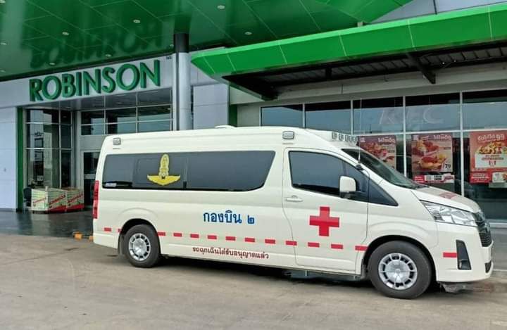 นาวาอากาศเอก ชวภณ ยิ้มพงษ์ ผู้บังคับการกองบิน ๒ ให้การสนับสนุนรถพยาบาลฉุกเฉิน (Aumbulance)พร้อมพลขับ สำหรับการให้บริการฉีดวัคซีนป้องกันโรคติดเชื้อไวรัสโคโรนา ๒๐๑๙ ให้กับประชาชนในพื้นที่จังหวัดลพบุรี ณ พื้นที่ให้บริการ ห้างสรรพสินค้าโรบินสัน ลพบุรี ในกรณีเกิดเหตุฉุกเฉิน ในห้วงวันที่ ๗ มิถุนายน – ๓๐ กันยายน ๒๕๖๔