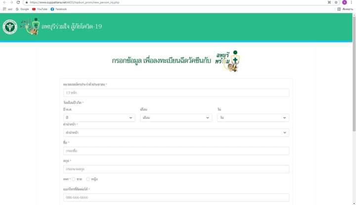 - ลงทะเบียนผ่านสถานพยาบาลสังกัดกระทรวงสาธารณสุขที่เป็นหน่วยฉีดวัคซีนทุกแห่ง ในจังหวัดลพบุรี
