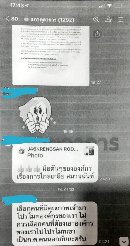 โดยผู้ใช้ไลน์ดังกล่าวเป็น (ก.ต.) ผู้ทรงคุณวุฒิขั้นศาลอุทธรณ์มีหน้าที่ควบคุมดูแลและลงโทษผู้กระทำผิดข้อห้ามของกฎหมายหรือฝ่าฝืนหรือไม่ปฏิบัติตามจริยธรรมของข้าราชการตุลาการแล้วในการเลือก (ก.ต.) ศาลยุติธรรมผู้ทรงคุณวุฒิ