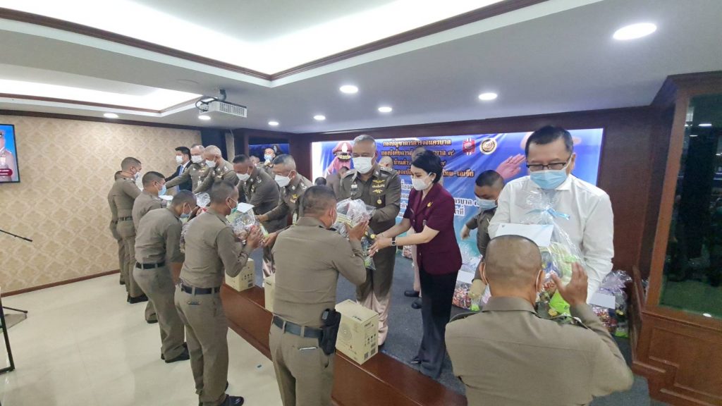 พล.ต.ท.ภัคพงศ์ พงษ์เภตรา ผบช.น. พร้อมด้วย พล.ต.ท.จิรพัฒน์ ภูมิจิตร จตร.(สบ 8) ปฏิบัติราชการ บช.น.,พล.ต.ต.โชคชัย เหลืองอ่อน,พล.ต.ต.สหรัฐ ศักดิ์ศิลปชัย รอง ผบช.น.,พล.ต.ต.พงศ์อานันต์ คล้ายคลึง ผบก.น.9,คณะแม่บ้านตำรวจนครบาล 9 และ สมาคมการค้าแลกเปลี่ยนเศรษฐกิจไทย-เอเซีย ร่วมมอบเครื่องอุปโภคบริโภคให้แก่ข้าราชการตำรวจสังกัด บก.น. 9 และครอบครัว เพื่อเป็นขวัญ กำลังใจในการปฏิบัติหน้าที่ช่วงสถานการณ์การแพร่ระบาดของเชื้อไวรัสโคโรนา 2019 (Covid-19)