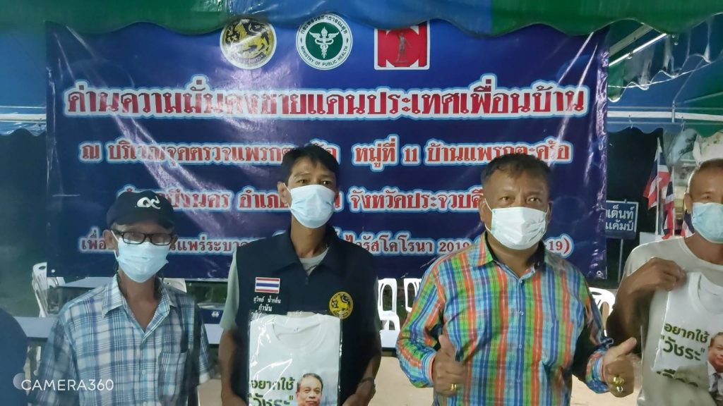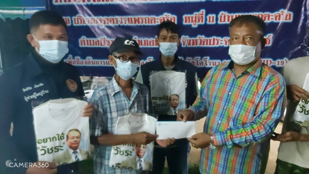 (14 มิ.ย.64)นายวัชระ เพชรทอง อดีตส.ส.พรรคประชาธิปัตย์ พร้อมด้วยนายบุญชนะ วิชัยกุล เดินทางไปมอบเงินและเสื้อยืดจำนวนหนึ่งเป็นขวัญกำลังใจสนับสนุนจุดตรวจด่านความมั่นคงบ้านแพรกตะคร้อให้นายมนตรี วชิระ ผู้ใหญ่บ้านม.11เชื้อสายกะเหรี่ยง บ้านแพรกตะคร้อ ต.บึงนคร อ. หัวหิน จ.ประจวบคีรีขันธ์ และนายสุวิทย์ น้ำกลั่น กำนันต.บึงนคร อ.หัวหินเพื่อให้กำลังใจและสนับสนุนซื้ออาหารเครื่องดื่มในการทำงานที่จุดตรวจชายแดนไทย-พม่า ซึ่งจุดตรวจนี้มีความสำคัญอย่างยิ่งเพราะเป็นด่านหน้าในการสกัดแรงงานเถื่อนที่มักใช้เส้นทางธรรมชาติลักลอบเข้าเมือง และที่สำคัญคือทำหน้าที่สกัดการแพร่ระบาดของโรคโควิด-19 ด้วย