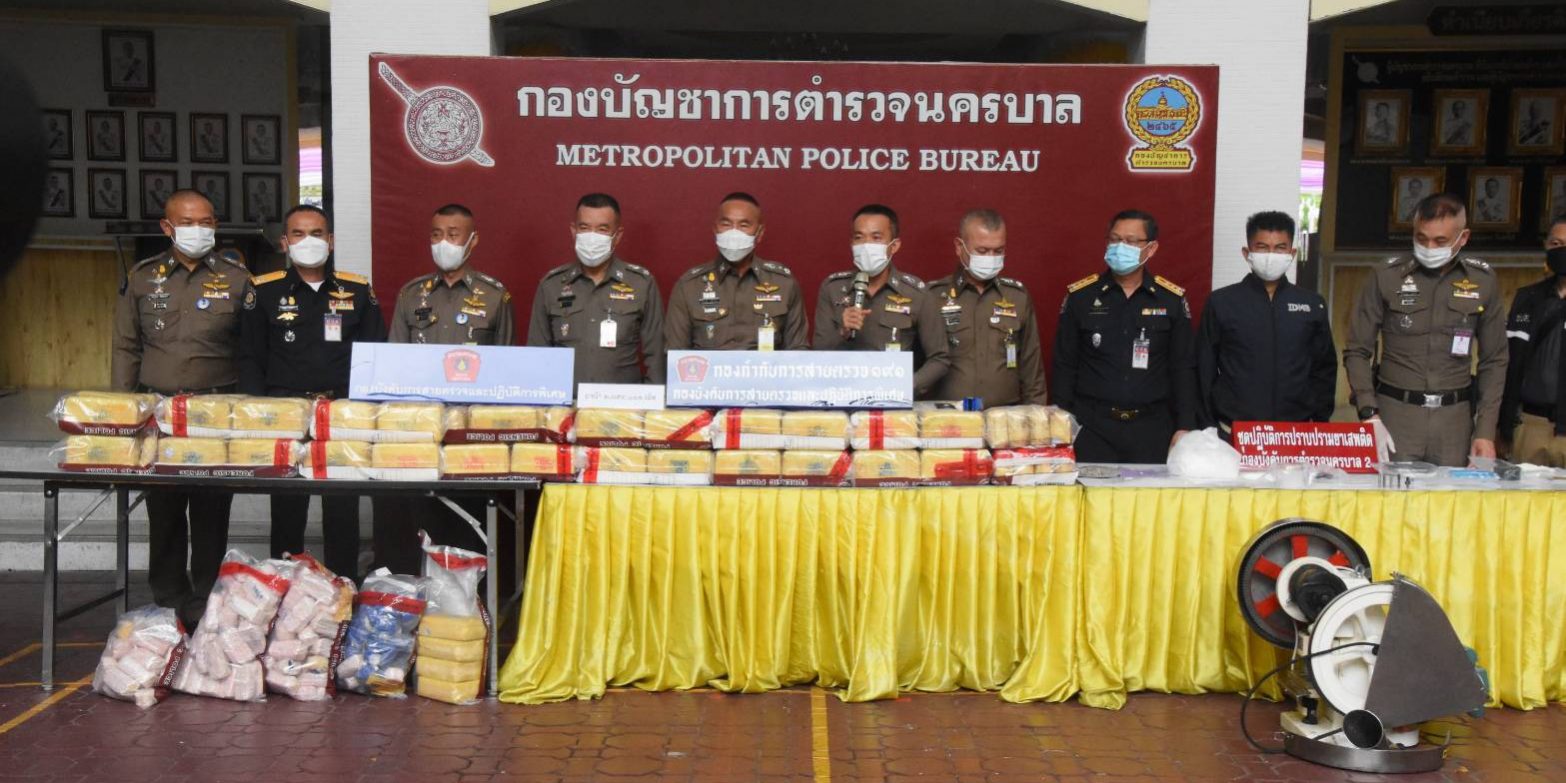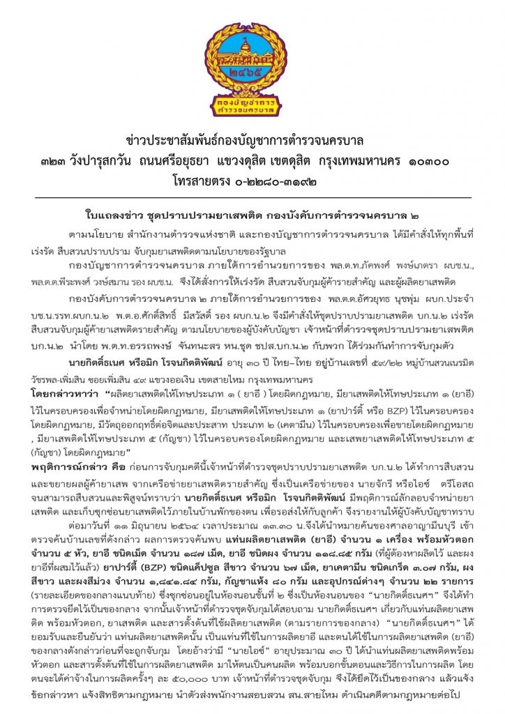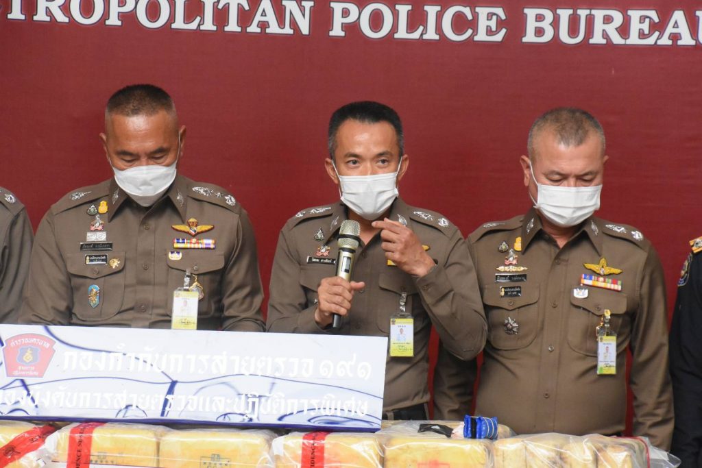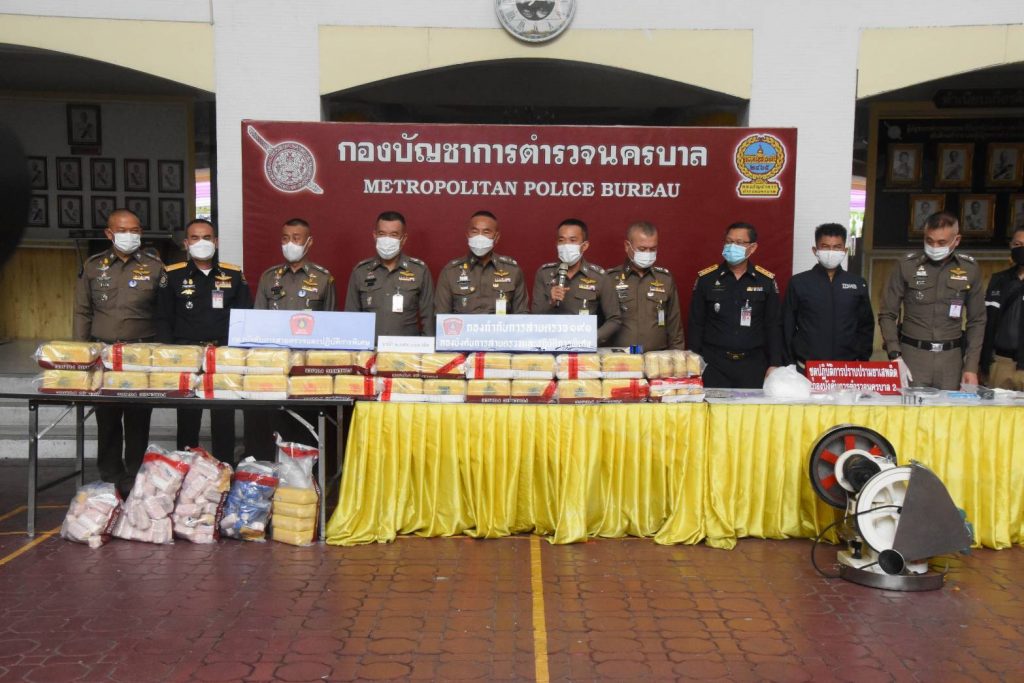วันนี้(จันทร์ที่ 14 มิ.ย. 64) เวลา 13.30 น. พล.ต.ท.ภัคพงศ์ พงษ์เภตรา ผบช.น. พร้อมด้วย พล.ต.ต.ปิยะ ต๊ะวิชัย รอง ผบช.น./โฆษก บช.น., พล.ต.ต.พีระพงศ์ วงษ์สมาน รอง ผบช.น., พล.ต.ต.สำราญ นวลมา รอง ผบช.น., พล.ต.ต.อัศวยุทธ นุชพุ่ม ผบก.ประจำ บช.น.รรท.บก.น.2, พล.ต.ต.โสภณ สารพัฒน์ ผบก.น.5, พล.ต.ต.สมบูรณ์ เทียนขาว ผบก.สปพ. และผู้แทน ปปส.กทม. ร่วมแถลงข่าวการจับกุมยาเสพติดดังกล่าว ณ ลานเอนกประสงค์ ชั้น1 อาคาร บช.น./ทีมงานประชาสัมพันธ์ บช.น.