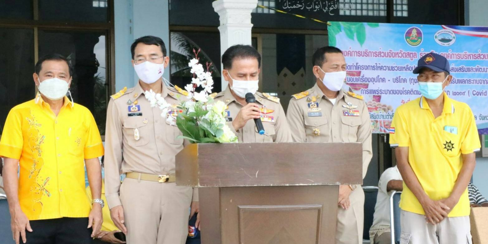 นายเอกรัฐ หลีเส็น ผู้ว่าราชการจังหวัดสตูล พร้อมด้วยนายสัมฤทธิ์ เลียงประสิทธิ์ นายก อบจ.สตูล นายยาลา ใบกาเด็ม นายอำเภอเมืองสตูล พันจ่าเอกสาคร สิทธิศักดิ์ ท้องถิ่นจังหวัดสตูล นายชัยนันท์ หลงสาม๊ะ นายก อบต.ตำมะลัง ร่วมมอบถุงยังชีพเครื่องอุปโภค – บริโภค เพื่อการดำรงชีพต่อครอบครัวที่ได้รับความเดือดร้อน หรือได้รับผลกระทบจากมาตรการแพร่ระบาดของโรคติดเชื้อไวรัสโควิด-19 ที่มัสยิดบ้านตำมะลังใต้ และบ้านตำมะลังเหนือ ต.ตำมะลัง อ.เมืองสตูล รวม 673 ครัวเรือน โดยบรรยากาศมีประชาชนมารอรับถุงยังชีพจำนวนมาก ซึ่งด้านหน้ามีการตรวจวัดไข้ ล้างมือด้วยแอลกอฮอล์ มีการจัดให้ประชาชนมารอรับถุงยังชีพนั่งกันอย่างเป็นระเบียบตามมาตรการป้องกันการแพร่ระบาดของโรค โควิด-19 อย่างเคร่งครัด