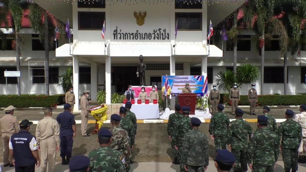 บริเวณหน้าที่ว่าการอำเภอวังโป่ง จังหวัดเพชรบูรณ์ ภายใต้การอำนวยการของ นายกฤษณ์ คงเมือง ผู้ว่าราชการจังหวัดเพชรบูรณ์ มอบหมายให้นายสมศักดิ์ เกี้ยวเกิด นายอำเภอวังโป่ง ผู้อํานวยการศูนย์ปฏิบัติการป้องกันและปราบปรามยาเสพติดอำเภอวังโป่ง เป็นประธานพิธีปล่อยแถวกวาดล้างยาเสพติดตามยุทธการพิชิตภัยยาเสพติด ด้วยแนวคิดชีวิตวิถีใหม่ ประจําปี 2564 ของกระทรวงมหาดไทย โดยมี พ.ต.อ.ชินเดช ดีแท้ ผกก.สภ.วังโป่ง และภาคส่วนที่เกี่ยวข้องเข้าร่วม