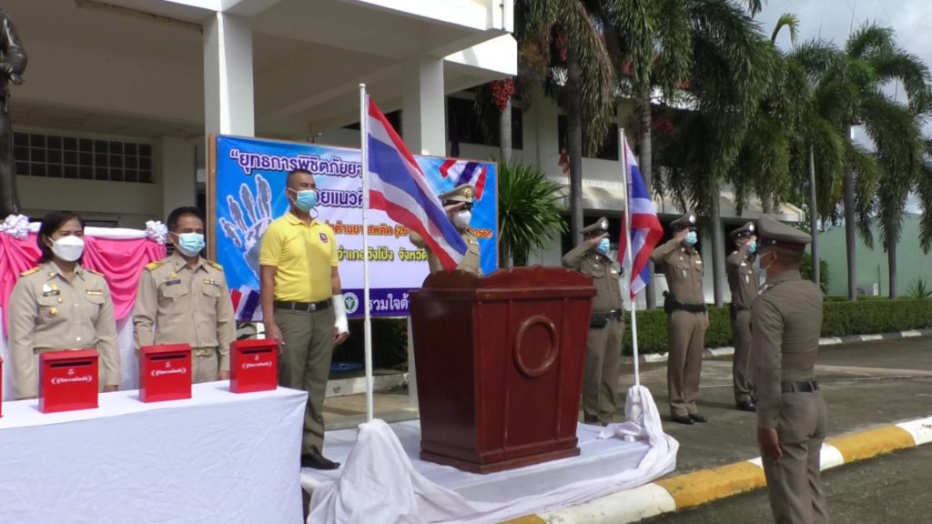นายสมศักดิ์ เกี้ยวเกิด นายอำเภอวังโป่ง กล่าวว่า การสร้างพื้นที่ปลอดภัยจากยาเสพติด ตามยุทธการพิชิตภัยยาเสพติด ด้วยแนวคิดชีวิตวิถีใหม่ เนื่องในวันต่อต้านยาเสพติดโลก (26 มิถุนายน) ประจำปี 2564 จึงขอให้ทุกภาคส่วน ได้ดำเนินการตามมาตรการสกัดกั้นและปราบปรามยาเสพติด เพื่อลดผู้ผลิต ผู้ค้า (Supply side) โดยบูรณาการการปราบปรามผู้ค้ารายย่อยในหมู่บ้าน ชุมชน ดำเนินการปิดล้อม ตรวจค้น ตั้งจุดตรวจ จุดสกัด ควบคู่กับมาตรการเชิงรุกของกระทรวงสาธารณสุขในการป้องกันการแพร่-ระบาดของโรคติดเชื้อไวรัส โคโรนา 2019 และมาตรการจัดระเบียบสังคมสำหรับมาตรการป้องกันยาเสพติด เพื่อลดผู้เสพ/ผู้ติดยาเสพติด (Demand side) ให้ดำเนินการ Re X-ray บุคลากรในสังกัดกระทรวงมหาดไทย และพื้นที่หมู่บ้าน ชุมชนเป้าหมาย เริ่มต้นระยะปฏิบัติการ (16 – 27 มิถุนายน 2564) ตามยุทธการพิชิตภัยยาเสพติด ด้วยแนวคิดชีวิตวิถีใหม่