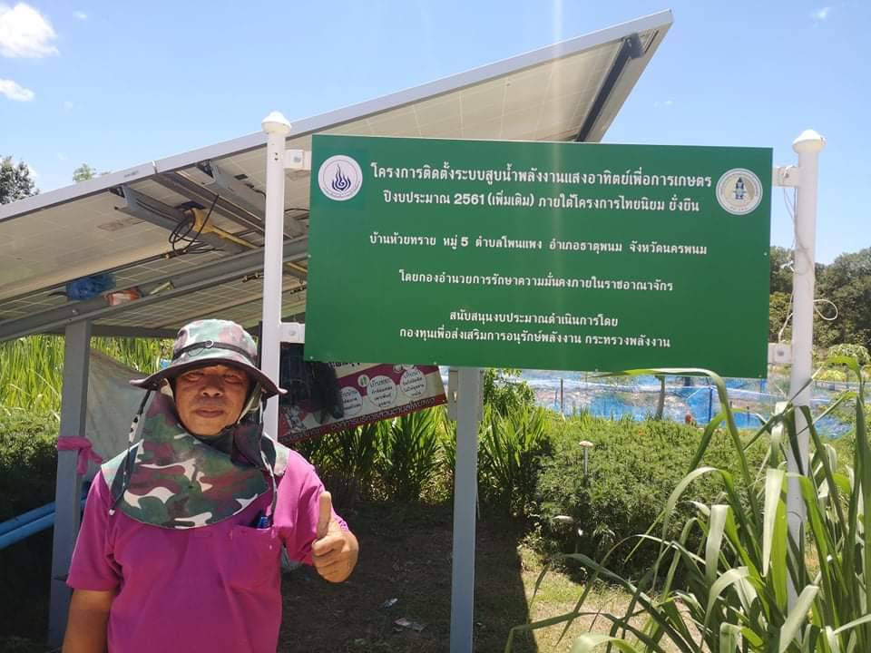 เมื่อวันที่ 19 มิถุนายน 2564 ที่ อำเภอธาตุพนม จังหวัดนครพนม ผู้สื่อข่าวได้รับรายงานว่าภัยแล้งที่เกิดขึ้นในประเทศไทยมีผลกระทบโดยตรงกับการเกษตรและแหล่งน้ำ ส่งผลเสียหายต่อกิจกรรมทางการเกษตร เช่น พื้นดินขาดความชุ่มชื้น พืชขาดน้ำ พืชชะงักการเจริญเติบโต ผลผลิตที่ได้มีคุณภาพต่ำ รวมถึงปริมาณลดลง ภัยแล้งที่เกิดมีผลต่อการเกษตร มักเกิดในฤดูฝนที่มีฝนทิ้งช่วงเป็นเวลานาน ส่วนใหญ่เกิดจากฝนแล้ง และทิ้งช่วงจะมีปริมาณฝนลดลง ซึ่งภัยแล้งลักษณะนี้จะเกิดขึ้นเป็นประจำทุกปี และมีแนวโน้มที่จะทวีความรุนแรงขึ้นบางครั้งก็อาจครอบคลุมพื้นที่กว้างเกือบทั่วประเทศไทยโครงการระบบสูบน้ำพลังงานแสงอาทิตย์เพื่อการเกษตรจึงได้เกิดขึ้นเพื่อแก้ปัญหาภัยแล้งในพื้นที่ต่างๆของประเทศไทย จึงได้ลงพื้นที่ติดตามแปลงเกษตรทฤษฎีใหม่ผสมผสานเป็นระบบการผลิตแบบพอเพียง ที่เกษตรกรสามารถเลี้ยงตัวเองได้มีความสามัคคี ร่วมมือร่วมใจในการช่วยเหลือซึ่งกันและกันเพื่อลดค่าใช้จ่ายจากโครงการระบบสูบน้ำพลังงานแสงอาทิตย์เพื่อการเกษตรของกลุ่มผู้ใช้น้ำที่เข้าร่วมโครงการในพื้นที่จังหวัดนครพนม โดยมีนายสรศักดิ์ พนาจันทร์ เกษตรกรบ้านห้วยทราย หมู่ที่ 5 ตำบลโพนแพง อำเภอธาตุพนม จังหวัดนครพนม ได้พาเดินเยี่ยมชมแปลงเกษตรที่กำลังเจริญเติบโตอย่างสวยงาม รวมถึงได้เล่าความเป็นมาของโครงการระบบสูบน้ำพลังงานแสงอาทิตย์เพื่อการเกษตรปีงบประมาณ 2561 (เพิ่มเติม) ภายใต้โครงการไทยนิยม ยั่งยืน บ้านห้วยทราย โดยกองอำนวยการรักษาความมั่นคงภายในราชอาณาจักร ที่มีพลเอก ธัญญา เกียรติสาร ประธานคณะอนุกรรมการบริหารจัดการทรัพยากรน้ำรายภาคในพื้นที่ภาคตะวันออกเฉียงเหนือในช่วงดำรงตำแหน่งแม่ทัพภาคที่ 2/ผู้อำนวยการการรักษาความมั่นคงภายในราชอาณาจักร ประธานศูนย์บริหารจัดการน้ำภาคตะวันออกเฉียงเหนือ ภายใต้การดำเนินการผ่านแนวคิด “ น้ำ คือ ชีวิต ” “ น้ำ คือ ความมั่นคง ” ตามคำสั่ง กองทัพภาคที่ 2 / กองอำนวยการรักษาความมั่นคงภายในภาค 2 ที่ 29 / 2561 ลงวันที่ 16 กุมภาพันธ์ 2561 เพื่อขับเคลื่อนการดำเนินงานตามนโยบายของคณะกรรมการบริหารจัดการทรัพยากรน้ำรายภาคในพื้นที่ภาคตะวันออกเฉียงเหนือ และบูรณาการส่วนราชการที่เกี่ยวข้อง ที่มีที่ตั้งในจังหวัดนครราชสีมา ตลอดจนเชิญผู้เชี่ยวชาญร่วมเป็นที่ปรึกษาทั้งภาครัฐและภาคประชาชน สนับสนุนงบประมาณการดำเนินการโดยกองทุนเพื่อส่งเสริมการอนุรักษ์พลังงาน กระทรวงพลังงาน ประจำปีงบประมาณ 2561 ภายใต้การบริหารจัดการสำนักงานบริหารจัดการทรัพยากรน้ำแ