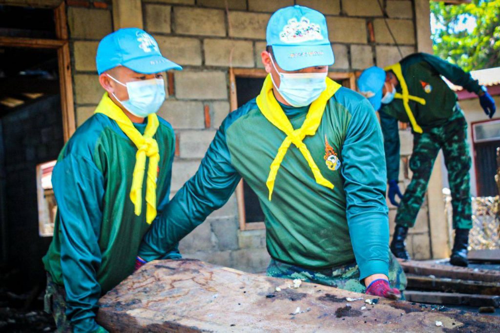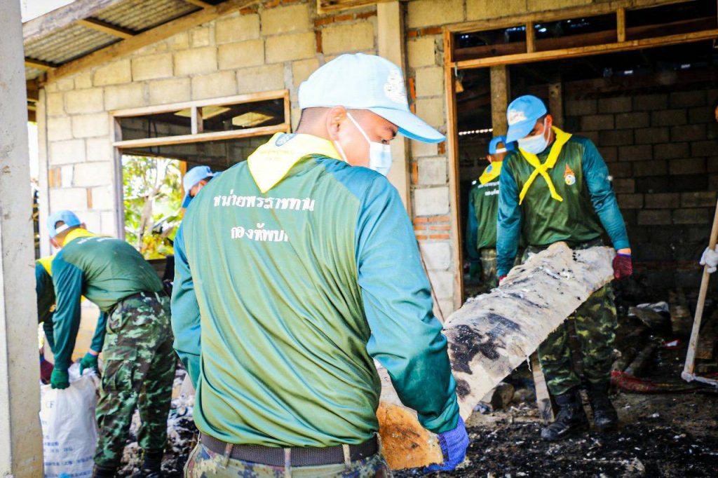 โดยทางด้านกองพันทหารราบที่ 1 กรมทหารราบที่ 8 ค่ายศรีสองรัก อ.เมือง จ.เลย พันโท ประดิษฐ์ พรมเรียน ผู้บังคับกองพันทหารราบที่ 1 กรมทหารราบที่ 8 (ผบ.ร.8 พัน 1 ) ได้สนองตอบนโยบาย ผบ.ร.8 และกองทัพบกอย่างต่อเนื่อง จัดกำลังพลจิตอาสา ร่วมกับ อบต.จอมศรี และผู้นำชุมชน เข้าช่วยเหลือในการรื้อถอนบ้านที่ถูกไฟไหม้ของคุณตา สมาน บุดดา และคุณยายเคลือ บุดดา อายุ 70 ปี เลขที่ 245/3 หมู่ 6 ต.จอมศรี อ.เชียงคาน จ.เลย เมื่อเมื่อวันที่ 18 มิ.ย.64 ที่ผ่านมา ซึ่งสาเหตุคาดว่าน่าจะเกิดจากไฟฟ้าลัดวงจร ทำให้เกิดประกายไฟลุกไหม้บ้านทั้งในเวลารวดเร็ว