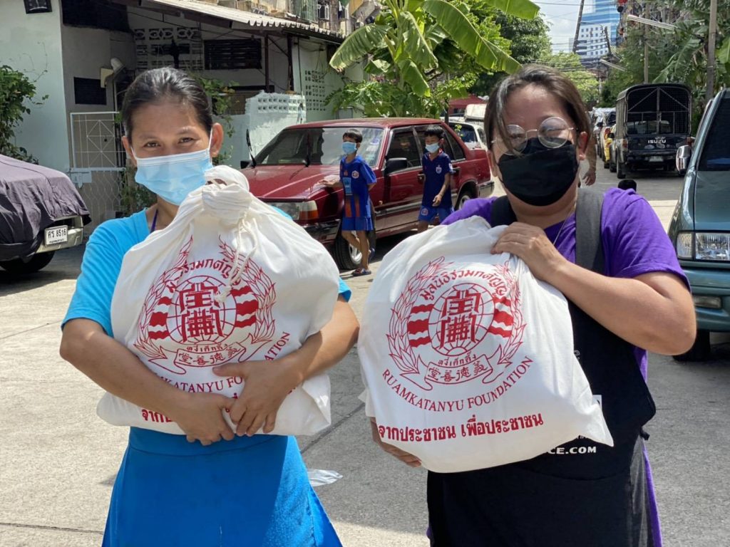 ทุกบ้านจะได้รับคูปอง Rku. ให้นำมาที่ทางเข้าชุมชน จุดจอดรถบรรทุกของ มูลนิธิร่วมกตัญญู เพื่อรับถุงสิ่งของช่วยเหลือบรรเทาความเดือดร้อน ข้าวสารอาหารแห้ง โดย ท่านประธาน มูลนิธิร่วมกตัญญู ดร.รัตนา สมสกุลรุ่งเรือง และ ดาราอาสาสมัคร น้องนุ้ย เกศริน เอกธวัชกุล,น้องหน่อย อุษณีภรณ์ ผลเจริญ พร้อมทีมงานร่วมส่งกำลังใจ