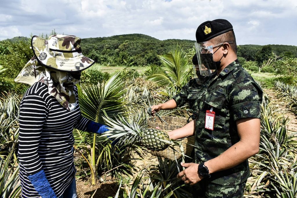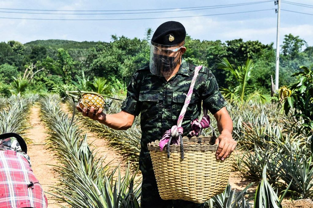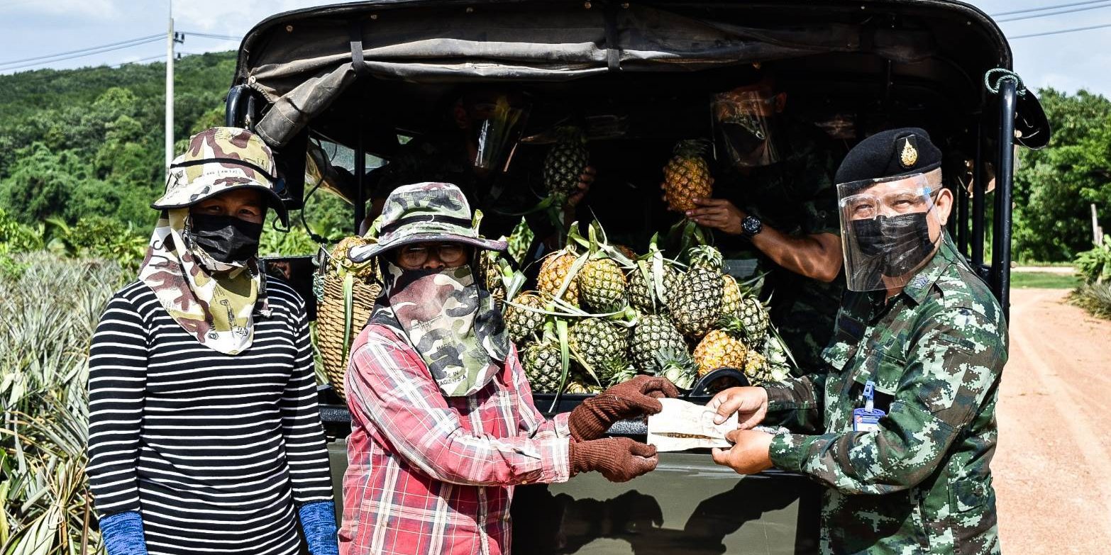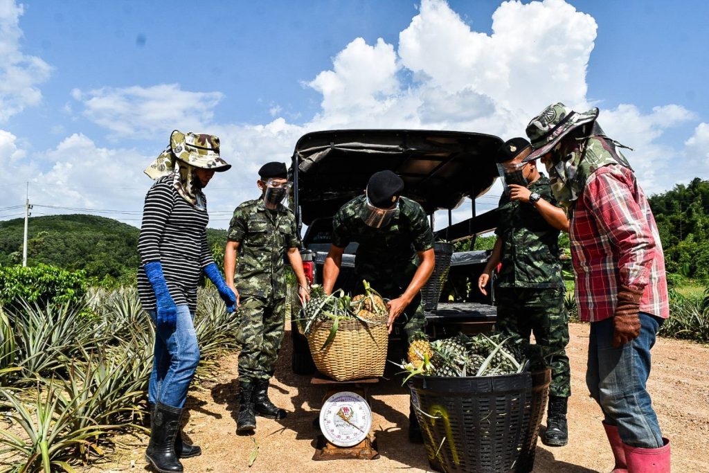 พันเอก ณรงค์ วิชญาณวรวุฒิ ผู้บังคับการกรมทหารราบที่ 8 ( ผบ.ร.8 ) มีความห่วงใยต่อเกษตรกรชาวสวนสับปะรดที่กำลังประสบปัญหาจากสถานการณ์การแพร่ระบาดโรคโควิด-19 จึงได้จัดกำลังพลลงพื้นที่เข้าช่วยเหลือเกษตรกรชาวสวนสับปะรดหวาน ไปรับซื้อสับปะรดของกลุ่มเกษตรกรในพื้นที่ บ.ไร่ม่วง ต.น้ำหมาน อ.เมือง จ.เลย ที่ได้รับผลกระทบฯ ซึ่งพ่อค้าแม่ค้าไม่สามารถมารับซื้อที่สวนโดยตรงกับเกษตรกรถึงสวน ซึ่งหากปล่อยไว้นานจะทำให้ผลผลิตเสียหายและขาดทุน เป็นการบรรเทาความเดือดร้อนให้กับเกษตรกรตามตามโครงการทบ.”น้องทหารอิ่มท้อง พี่น้องเกษตรกรอิ่มใจ”เข้าให้ความช่วยเหลือตามศักยภาพของหน่วย ด้วยการรับซื้อพืชผลทางการเกษตร รวมถึงผลไม้ที่ออกตามฤดูกาลในแต่ละพื้นที่ เพื่อให้เกษตรกรได้มีรายได้จุนเจือครอบครัว และการบรรเทาความเดือนร้อนในเบื้องต้น โดยให้หน่วยขึ้นตรงทุกหน่วยช่วยเหลือ อุดหนุน รับซื้อพืชผลทางการเกษตรจากเกษตรกรถึงในพื้นที่ โดยไม่ผ่านพ่อค้าคนกลาง