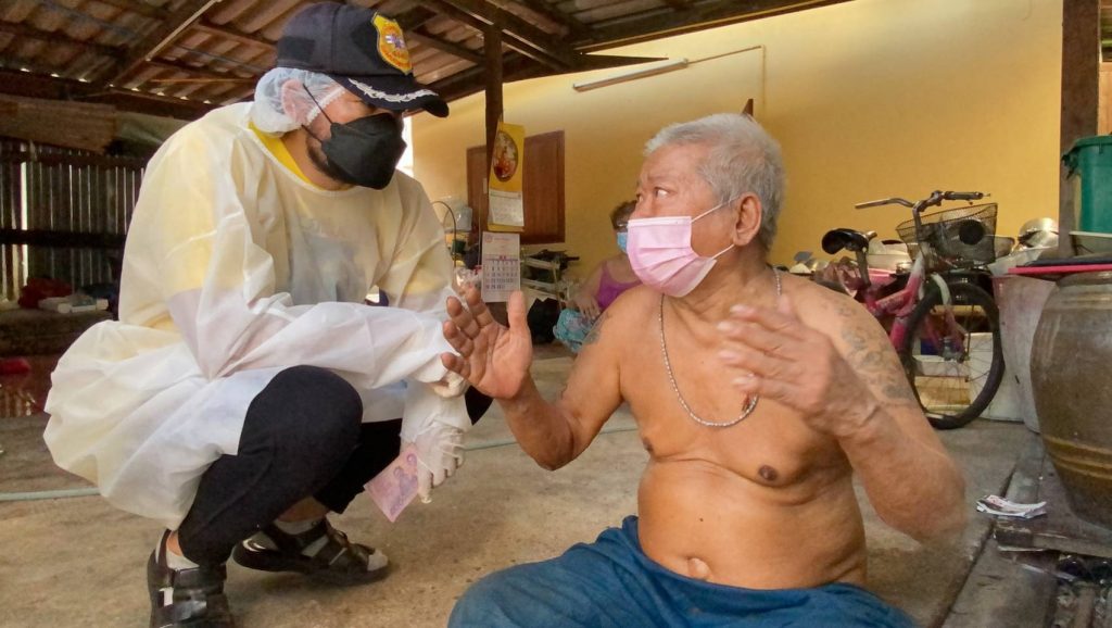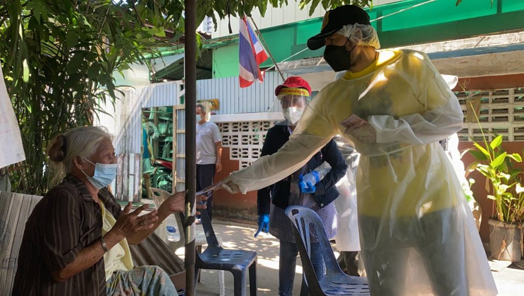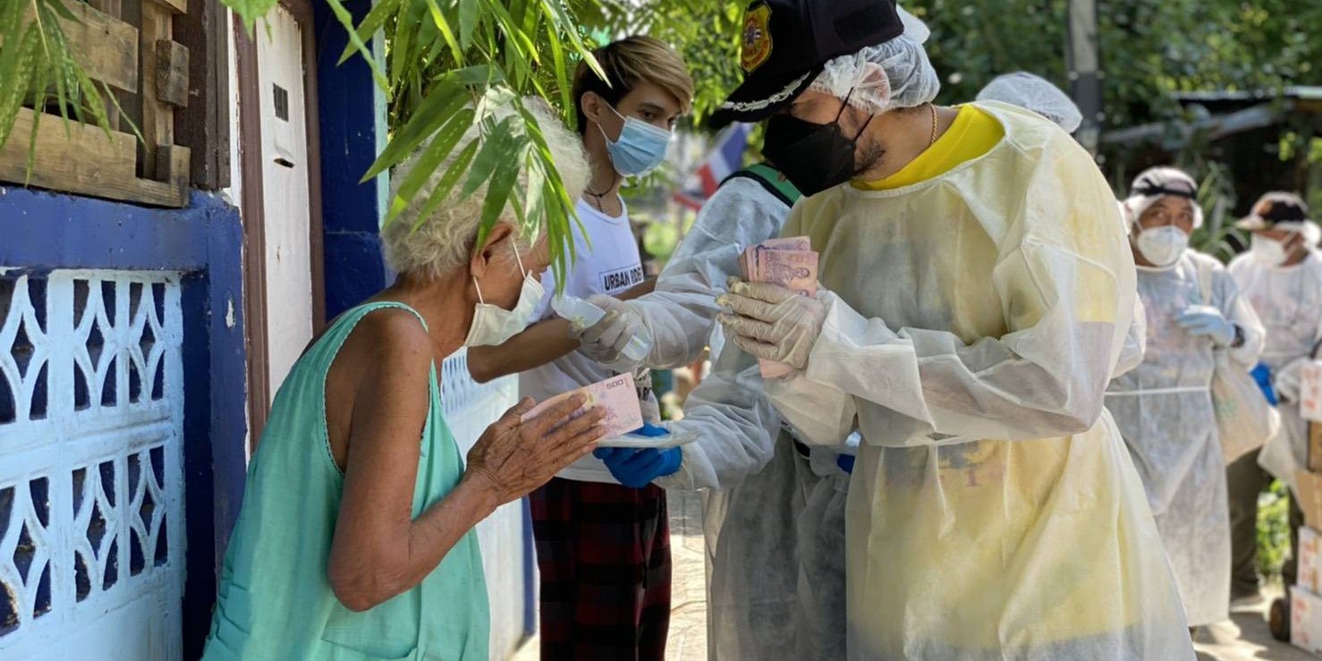 เช่นเดิม “บิณฑ์” บรรลือฤทธ์ จะเดินนำ ส่งกำลังใจ พร้อม มอบเงินให้ครอบครัวละ 500 บาท “ไทด์ เอกพัน” มอบเงิน ให้กับเด็กๆทุกคนในบ้าน และ ทีมงานมูลนิธิร่วมกตัญญู มอบหน้ากากอนามัย เจลล้างมือ และ ยังมี ผลิตภัณฑ์ของ เซียงเพียว มอบให้กับผู้สูงอายุในชุมชน