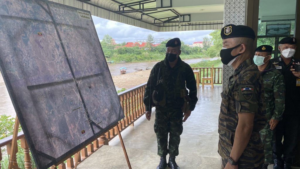 วันที่ 23 มิ.ย.64 จ.ตาก : ผู้สื่อข่าวรายงานว่า พล.ต.ท.สมพงษ์ ชิงดวง ผบช.สตม. พร้อมด้วย พล.ต.ต.อาชยน ไกรทอง รอง ผบช.สตม.,พล.ต.ต.พันธนะ นุชนารถ ผบก.สส.สตม.,พ.ต.อ.สถิตย์ พรมอุทัย,พ.ต.อ.อาภากร โกมลสุทธิ รอง ผบก.สส.สตม.,พ.ต.อ.มานะ นาคทั่ง รอง ผบก.ตม.5,พ.ต.อ.ชย พานะกิจ ผกก.(สอบสวน) กลุ่มงานสอบสวน บก.สส.สตม.,พ.ต.อ.จิรพงศ์ รุจิรดำรงค์ชัย ผกก.สส.บก.ตม.3 เดินทางไปยังด่านตรวจคนเข้าเมืองแม่สอด จ.ตาก เพื่อกำชับการปฏิบัติหน้าที่และตรวจชายแดนเพื่อป้องกันปัญหาคนต่างด้าวและคนไทยลักลอบหลบหนีเข้าเมืองโดยผิดกฎหมาย ตามมาตรการป้องกันไวรัสโควิด-19 โดยมี พล.ต.ต.เดชา กัลยาวุฒิพงศ์ ผบก.ตม.5 และ พ.ต.อ.สัมพันธ์ เหลืองสัจจกุล ผกก.ตม.จ.ตาก ให้การต้อนรับ