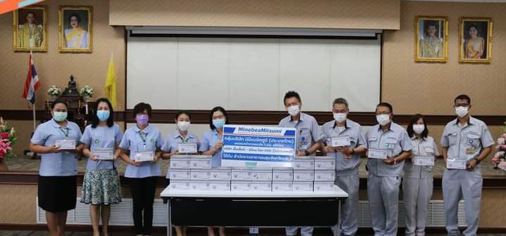 กลุ่มบริษัทมินีแบมิตซู(ประเทศไทย) นายชัยวัฒน์ ชัยวรรณจินดา ผู้จัดการฝ่ายอาชีวอนามัย ความปลอดภัยสิ่งแวดล้อมและความรับผิดชอบต่อสังคม และนายสุภาพ อุภัยพรม รองผู้จัดการฝ่ายทรัพยากรบุคคลและบริหาร คุณสุนีย์ เชิดชูชาติ กรรมการผู้อำนวยการฝ่ายวางแผนองค์กร เป็นตัวแทนกลุ่มบริษัท มินีแบมิตซูมิ (ประเทศไทย) มอบหน้ากากอนามัยให้แก่สำนักงานสาธารณสุขจังหวัดลพบุรี เพื่อใช้ในการรองรับ