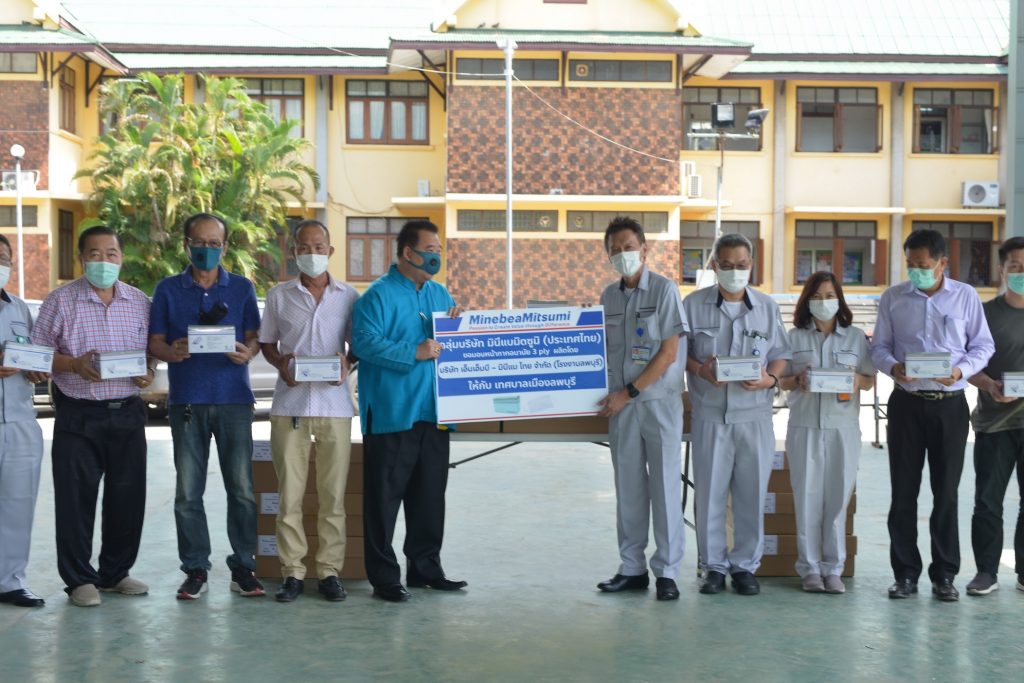 ทางบริษัทมินีแบมิตซูมิ ประเทศไทย จำกัด ทำพิธีมอบหน้ากากอนามัย 3 ply จำนวน 10 ชิ้นให้กับ นายกเทศมนตรีเมืองลพบุรีเพื่อนำไปแจกจ่ายประชาชนในเขตเทศบาลต่อไป