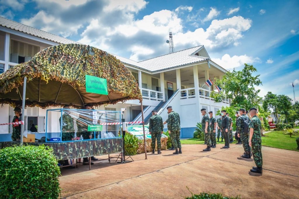 - ขั้นการดำเนินการ ในวันที่ทหารใหม่เข้ามารายงานตัวในหน่วยฝึกทหารใหม่ ได้จัดให้มีชุดแพทย์ทำการตรวจคัดกรองอย่างละเอียด หากพบผู้ติดเชื้อจะแยกออกเพื่อเข้าสู่กระบวนการรักษา ณ รพ.ประจำค่ายทหารพระยอดเมืองขวาง สำหรับส่วนที่เหลือจะแยกกักตัวภายในหน่วยฝึกเป็นเวลา 14 วันเพื่อให้พร้อมทำการฝึกในขั้นต่อไป