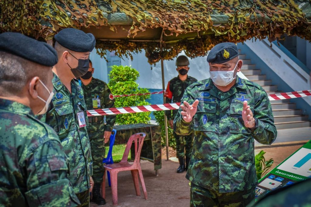 - ขั้นการฝึกและเสริมสร้าง โดยระหว่างการกักตัว จะใช้วิธีการแยกสอนในห้องเรียน หรือใช้การเรียนแบบออนไลน์ไปก่อน เมื่อครบกำหนด 14 วัน จึงสามารถทำการฝึกในสนามฝึกได้ แต่จะต้องเป็นไปตามมาตรการการเว้นระยะห่าง ของสาธารณะสุข (DMHTT) ทุกประการ ซึ่งทั้งครูฝึกและทหารใหม่ ตลอดจนเจ้าหน้าที่ต่าง ๆทุกคน จะถูกจำกัดให้อยู่แต่ภายในหน่วยฝึกไม่ให้ปะปนสู่ชุมชนภายนอกทั้งนี้ผู้บัญชาการทหารบกได้ห่วงใยและให้ความสำคัญในการดูแลทหารกองประจำการที่จะเข้ามาเป็นส่วนหนึ่งของกองทัพบกเป็นพิเศษ ซึ่งที่ผ่านมาได้มีมาตรการเพิ่มเติมการดูแลด้านสุขอนามัย โภชนาการ เวชศาสตร์การกีฬา ตลอดจนการเพิ่มโอกาสในการรับราชการ เพราะถือว่าทหารกองประจำการทุกนายเป็นผู้มีความเสียสละ เข้ามาดูแลด้านความมั่นคง ช่วยเหลือประชาชนในหลากหลายภารกิจ ตลอดจนเป็นครอบครัวของกองทัพบกที่จะต้องได้รับการดูแลอย่างดีที่สุดและได้ตรวจเยี่ยมและมอบนโยบายให้หน่วย กองพันทหารราบที่ 3 กรมทหารราบที่ 3 (ร.3 พัน.3.) ในการฝึกเป็นหน่วยกองพันในที่ตั้งตามนโยบายของแม่ทัพภาคที่ 2