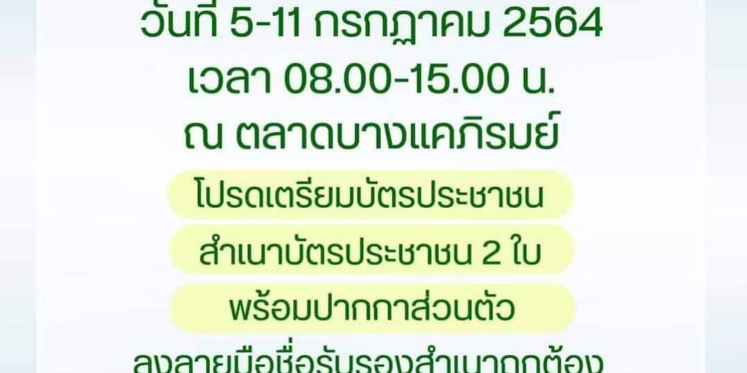 ดร.กฤชนนท์ อัยยปัญญา (ดร.ตั้น) กล่าวว่า ได้จัดให้มีการบริการตรวจคัดกรองโควิด-19 เชิงรุก ฟรี สำหรับประชาชน (คนไทย) เริ่มวันที่ 5-11 กรกฏาคม 2564 นี้ ตั้งแต่เวลา 08.00-15.00 น. ณ ตลาดบางแคภิรมย์ โปรดเตรียมบัตรประชาชน สำเนาบัตรประชาชน 2 ใบ พร้อมปากกาส่วนตัว ลงลายมือชื่อรับรองสำเนาถูกต้องระบุที่อยู่ปัจจุบันชัดเจนเบอร์โทรศัพท์ที่สามารถติดต่อได้ลงในเอกสารให้เรียบร้อย