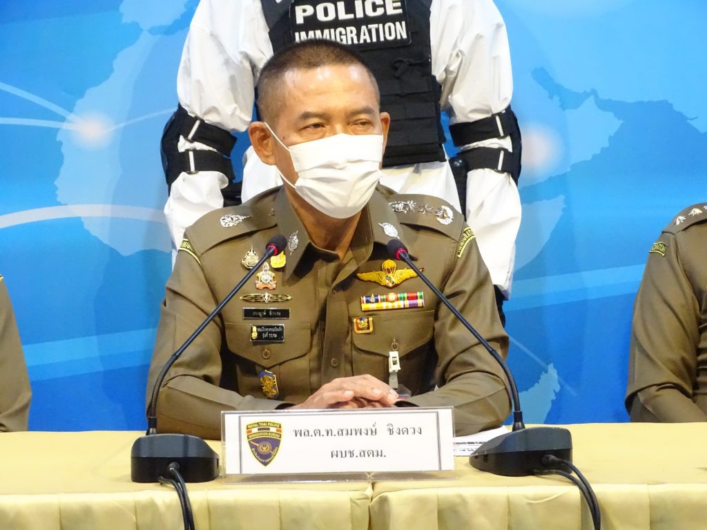 วันที่ 5 ก.ค.64 เวลา 11.00 น.ณ ห้องอเนกประสงค์ ชั้น 1 อาคาร 1 สตม. ซอยสวนพลู แขวงทุ่งมหาเมฆ เขตสาทร กรุงเทพมหานคร : พล.ต.ท.สมพงษ์ ชิงดวง ผบช.สตม.พร้อมด้วย พล.ต.ต.อาชยน ไกรทอง รอง ผบช.สตม.,พล.ต.ต.กฤษฎา กาญจนอลงกรณ์ ผบก.ตม.4,พ.ต.อ.เอกมนต์ พรชูเกียรติ,พ.ต.อ.วีรยศ การุณยธร,พ.ต.อ.ปรีชา กองแก้ว รอง ผบก.ตม.4 และ พ.ต.อ.นพดล รักชาติ ผกก.ตม.จ.มุกดาหาร ร่วมแถลงข่าวการจับกุม ดังนี้