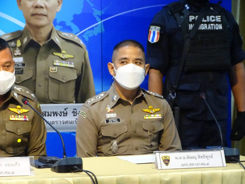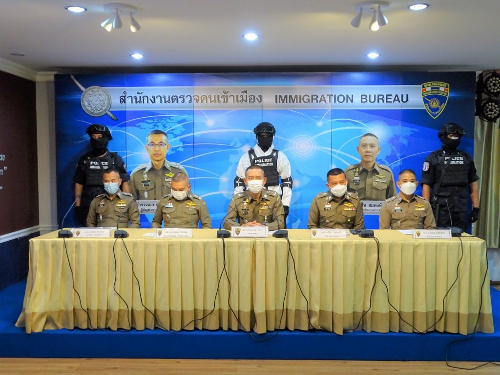 วันที่ 5 ก.ค.64 เวลา 11.00 น.ณ ห้องอเนกประสงค์ ชั้น 1 อาคาร 1 สตม. ซอยสวนพลู แขวงทุ่งมหาเมฆ เขตสาทร กรุงเทพมหานคร : พล.ต.ท.สมพงษ์ ชิงดวง ผบช.สตม.พร้อมด้วย พล.ต.ต.อาชยน ไกรทอง รอง ผบช.สตม.,พล.ต.ต.กฤษฎา กาญจนอลงกรณ์ ผบก.ตม.4,พ.ต.อ.เอกมนต์ พรชูเกียรติ,พ.ต.อ.วีรยศ การุณยธร,พ.ต.อ.ปรีชา กองแก้ว รอง ผบก.ตม.4 และ พ.ต.อ.ธานินทร์ อินทพรต ผกก.ตม.จ.หนองคาย ร่วมแถลงข่าวการจับกุม ดังนี้