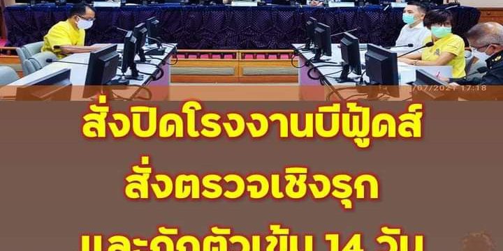 ผู้ว่าราชการจังหวัดลพบุรีออกคำสั่งด่วนสั่งปิดโรงงานบีฟู้ด สั่งตรวจเข้มพนักงานโรงงานฯ