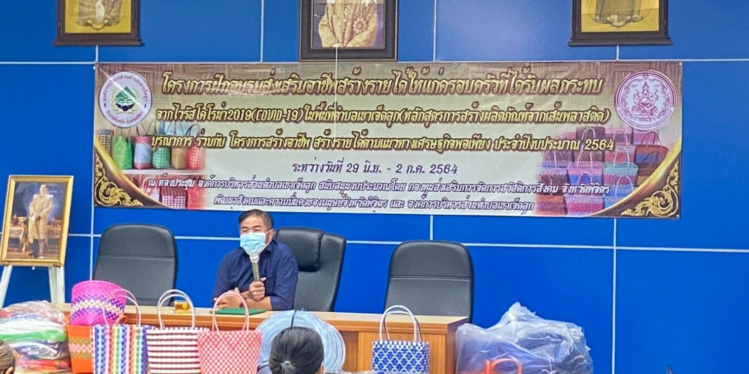 ณ ห้องประชุมองค์การบริหารส่วนตำบลเขาเจ็ดลูก อำเภอทับคล้อ จังหวัดพิจิตร นายกกฤษณะ ก้อนแก้ว นายกองค์การบริหารส่วนตำบลเขาเจ็ดลูก ได้เป็นประธานในพิธีเปิดการอบรมโครงการสร้างอาชีพ สร้างรายได้ตามแนวทางเศรษฐกิจพอเพียง ประจำปีงบประมาณ 2564 บรูณาการ ร่วมกับ โครงการฝึกอบรมส่งเสริมอาชีพสร้างรายได้ให้แก่ครอบครัวที่ได้รับผลกระทบจากไวรัสโคโรน่า2019 (covid -19) (กิจกรรม การสร้างผลิตภัณฑ์จากเส้นพลาสติก)ซึ่งได้รับการสนับสนุนจาก พมจ.จังหวัดพิจิตร โดยมีประชาชนในพื้นที่ให้ความสนใจเข้าร่วมกิจกรรมฝึกการทำผลิตภัณฑ์จากเส้นพลาสติดตลอดการอบรม ซึ่งได้ทีมวิทยากรด้านอาชีพ จากคุณสำเนียง ขาวละมูล และนายสำรวย เชยจันทร์ ผู้อำนวยการโรงพยาบาลส่งเสริมสุขภาพตำบลเขาเจ็ดลูก มาให้ความรู้เกี่ยวกับการป้องกันโรค ไวรัสโคโรน่า2019 (covid -19)อีกด้วย