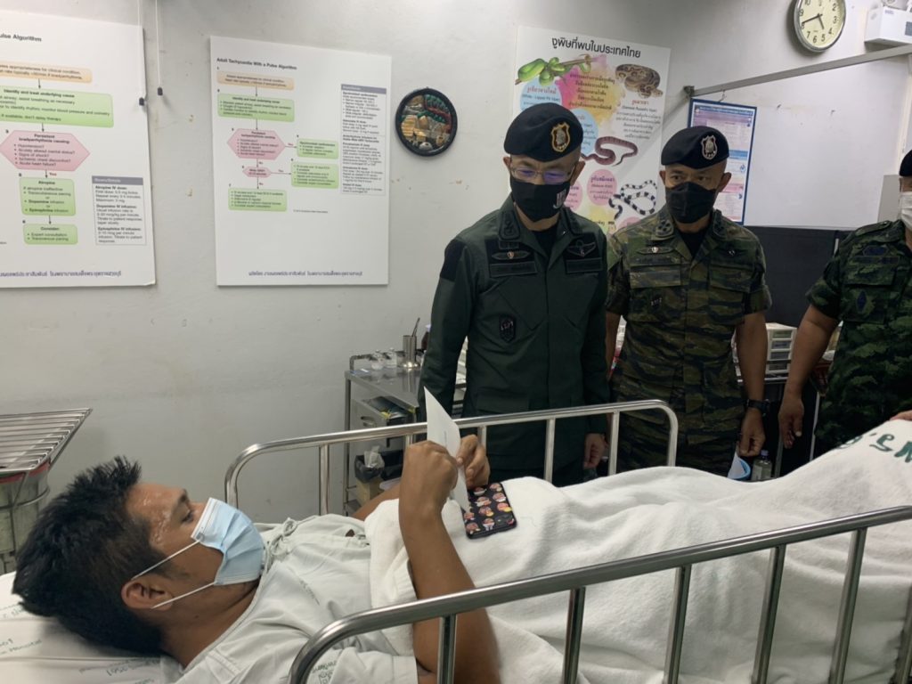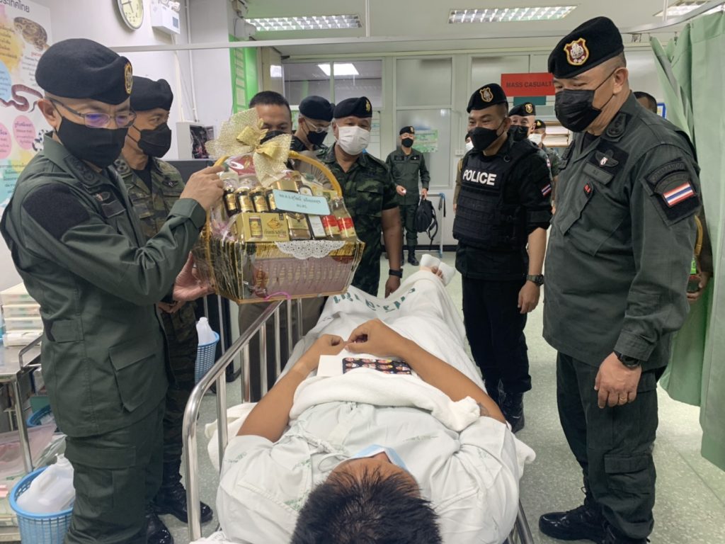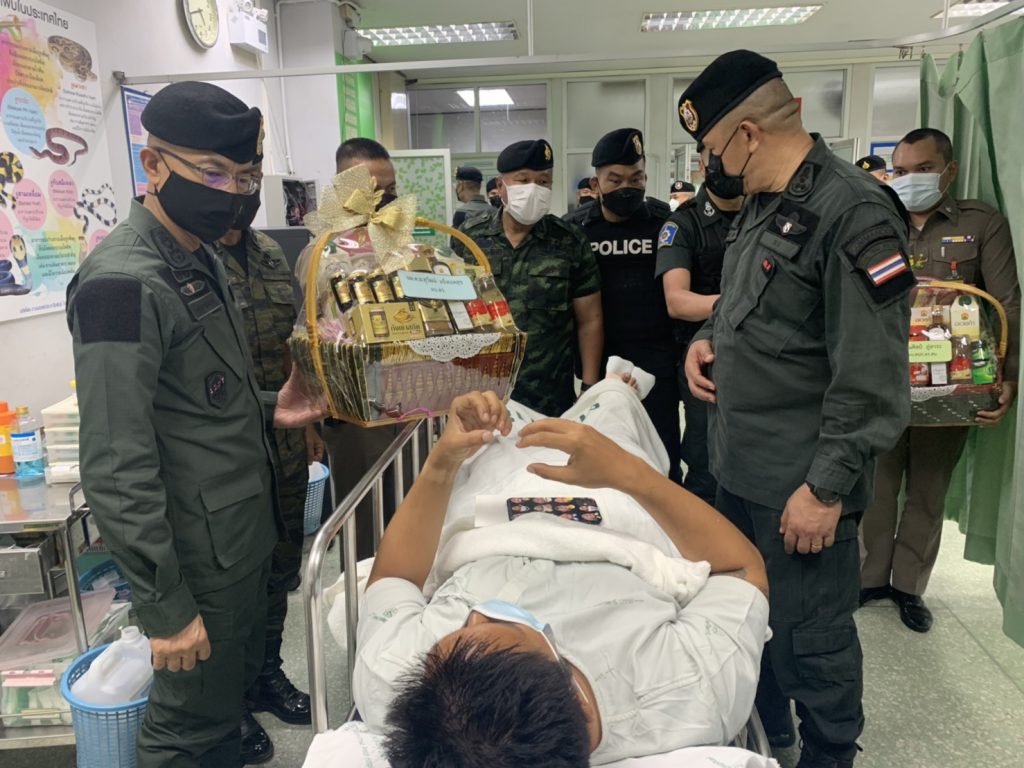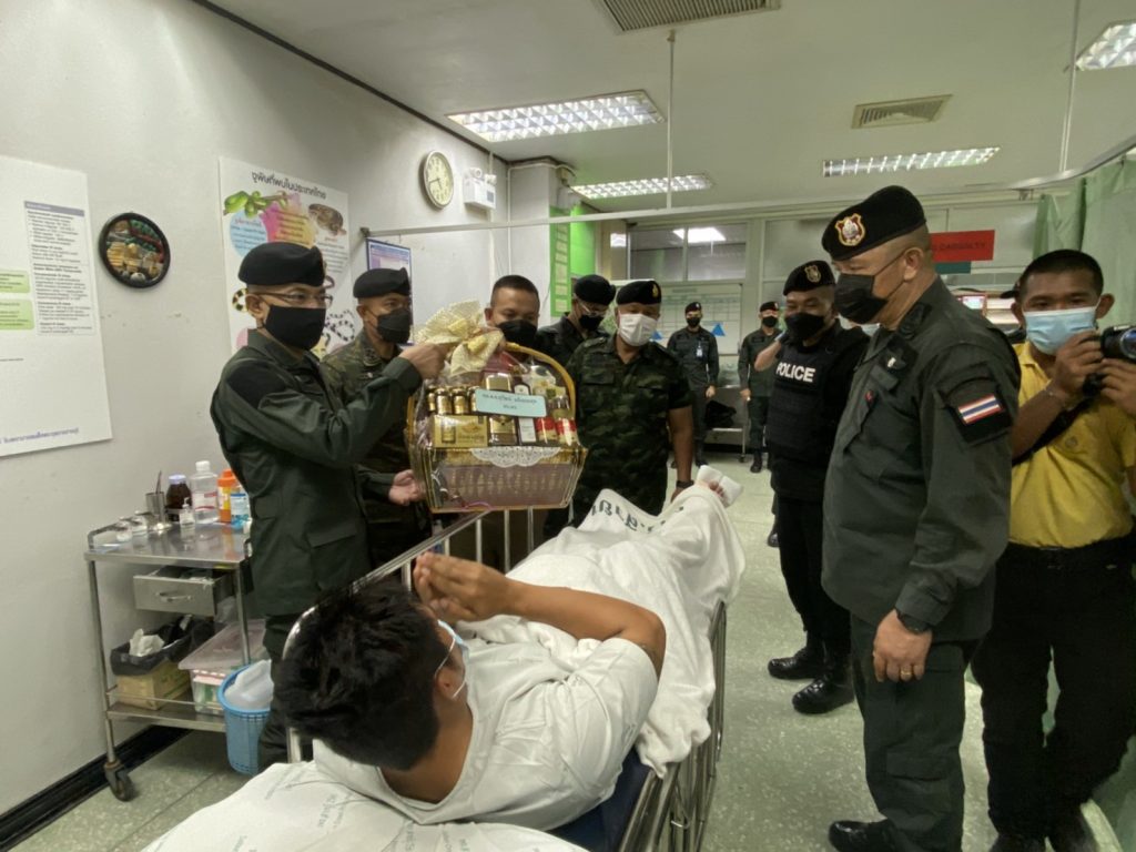 จากนั้น ผบ.ตร. และคณะ ได้เดินทางไปที่ รพ.สมเด็จพระยุพราชสายบุรี เพื่อเยี่ยมให้กำลังใจพร้อมมอบกระเช้าเเละเงินช่วยเหลือ ข้าราชการตำรวจที่ได้รับบาดเจ็บจากเหตุการณ์ปะทะกับคนร้าย สำหรับสถานการณ์ล่าสุด เจ้าหน้าที่ควบคุมสถานการณ์ได้บางส่วน หากมีความคืบหน้าประการใดจะแจ้งให้ทราบต่อไป