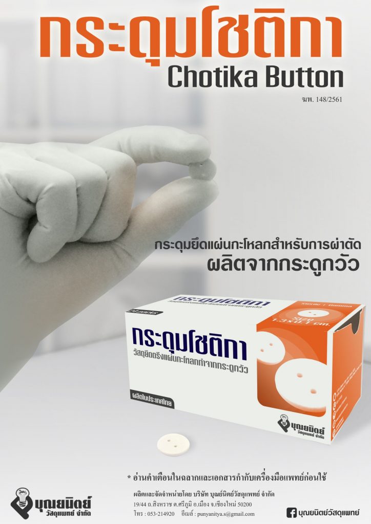 สินค้านำเข้าจากต่างประเทศ ผลิตจากโลหะไทเทเนียม ราคา 3,000 บาท ต่อคู่ (2 ชิ้น) ทั้งประเทศใช้งานประมาณ 20,000 คู่ต่อปี คิดเป็นมูลค่า 60 ล้านบาท ส่วนกระดุมกระดูกวัว ของไทยราคาคู่ละ 150 บาท ถูกกว่า 20 เท่า และความพิเศษจากกระดุมกระดูกวัว ที่ทำมาจากกระดูกเทียม เมื่อใช้งานเชื่อมตรึงกะโหลกศีรษะผู้ป่วยจนสำเร็จ ร่างกายก็จะสร้างกระดูกใหม่ที่มีชีวิตมาเชื่อมติดจนเป็นเนื้อเดียวกัน ในขณะที่สินค้าจากต่างประเทศทำมาจากโลหะ ก็จะเป็นวัสดุแปลกปลอมที่อยู่กับที่ตลอดกาล และมีโอกาสเกิดโรคแทรกซ้อนได้ เช่น อนุภาคโลหะสึกกร่อน ออกมาทำให้เนื้อเยื่อรอบข้างของผู้ป่วยอักเสบจนเจ็บปวดรุนแรง หรือหลุดออกไปตกค้างในอวัยวะภูมิคุ้มกันของร่างกาย เช่น ม้าม หรือตับ แล้วกระตุ้นปฏิกิริยาก่อมะเร็งได้