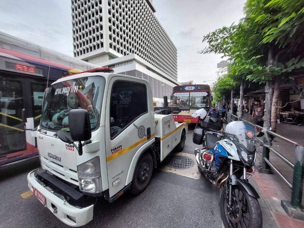 ภายหลังจึงนำกำลังเข้าตรวจสอบ ให้การช่วยเหลือเพื่อบรรเทาปัญหาการจราจร จากนั้น จึงดำเนินการปลดล๊อคเบรคสำเร็จ รถยก สน.พญาไท จึงสามารถนำพ้นการกีดขวางเรียบร้อยเปิดการจราจรได้เป็นปกติ
