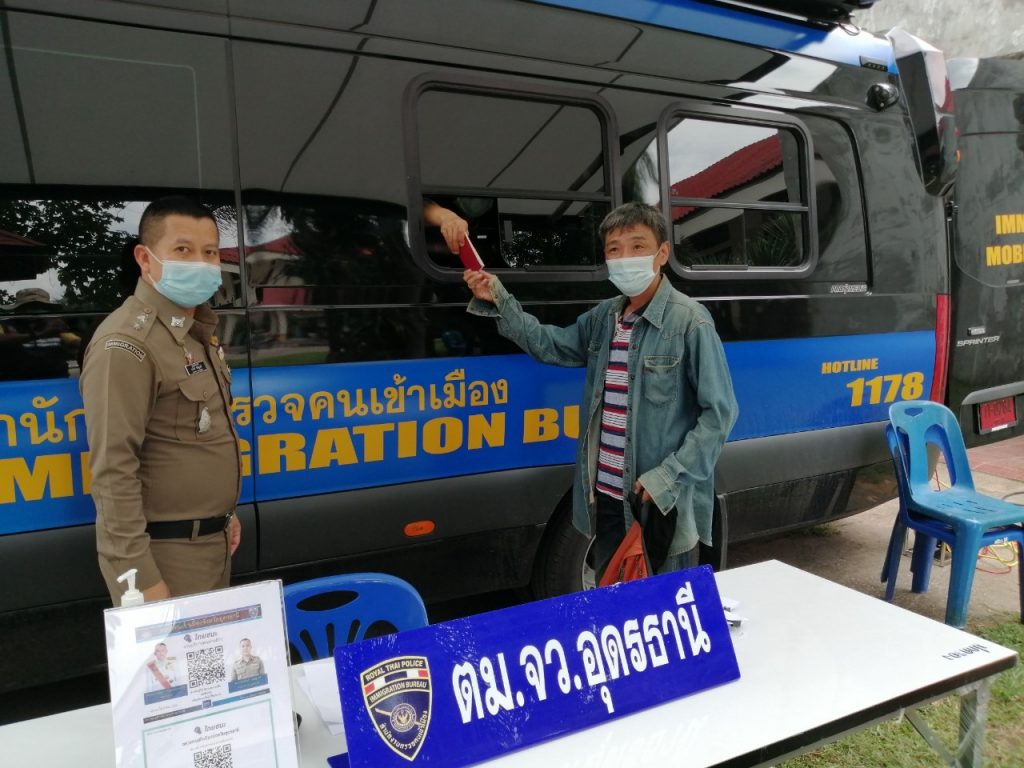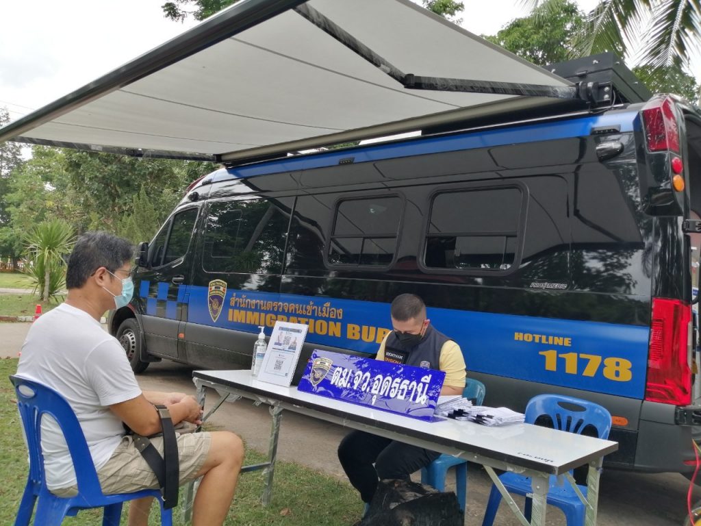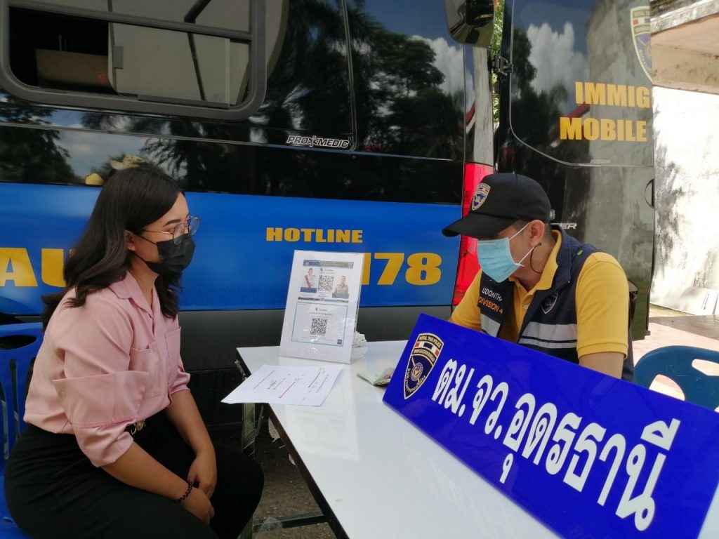 ด้าน พ.ต.ท.ธนวัสส์ สวญ.ตม.จ.อุดรธานี เปิดเผยว่า เป็นนโยบายของผู้บังคับบัญชาที่ต้องการให้ตำรวจตรวจคนเข้าเมืองทำงานเชิงรุก เพื่อเป็นการให้ความร่วมมือตามมาตราการของรัฐในการป้องกันการแพร่ระบาดโควิด-19 ในการลดความแออัด และเพิ่มความสะดวกแก่ผู้เข้ารับบริการ ไม่ต้องเดินทางเข้ามารายงานตัวที่ ตม.จ.อุดรธานี