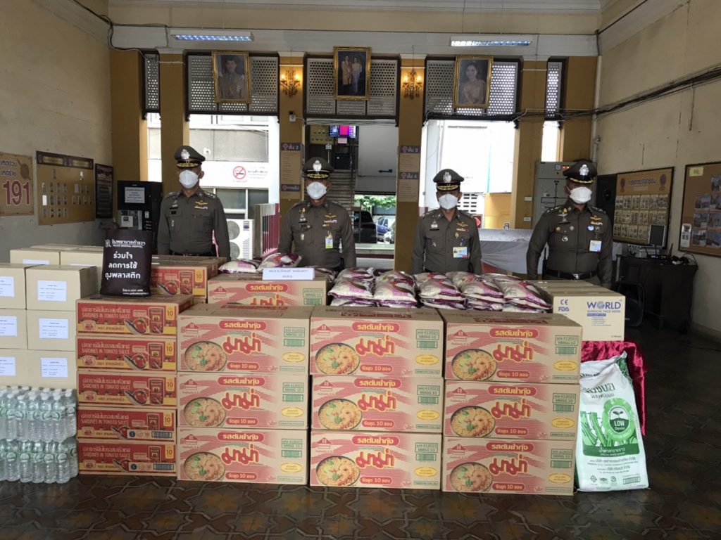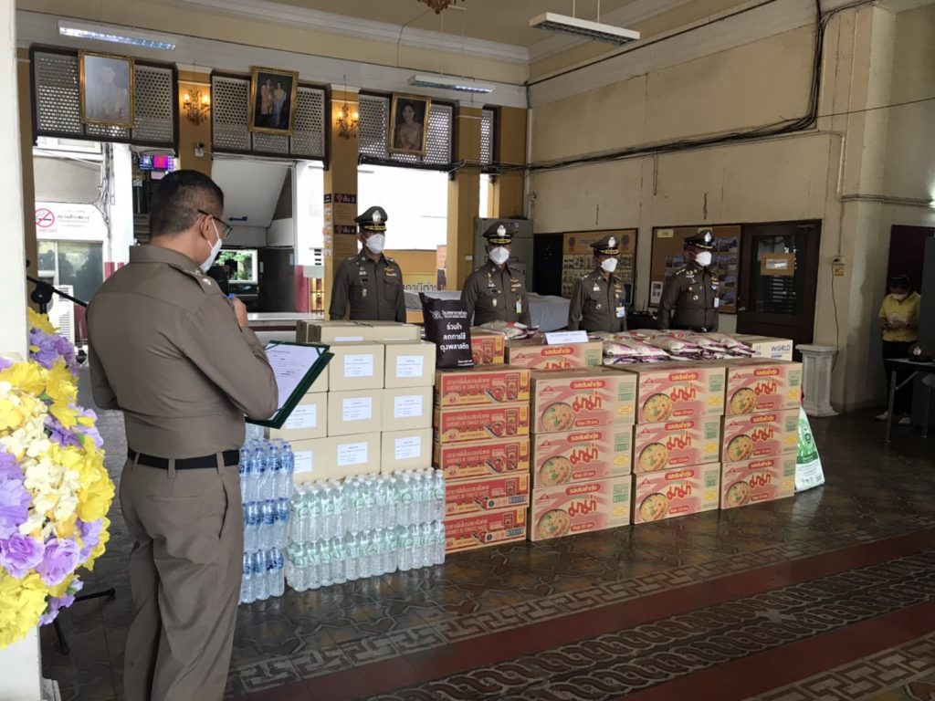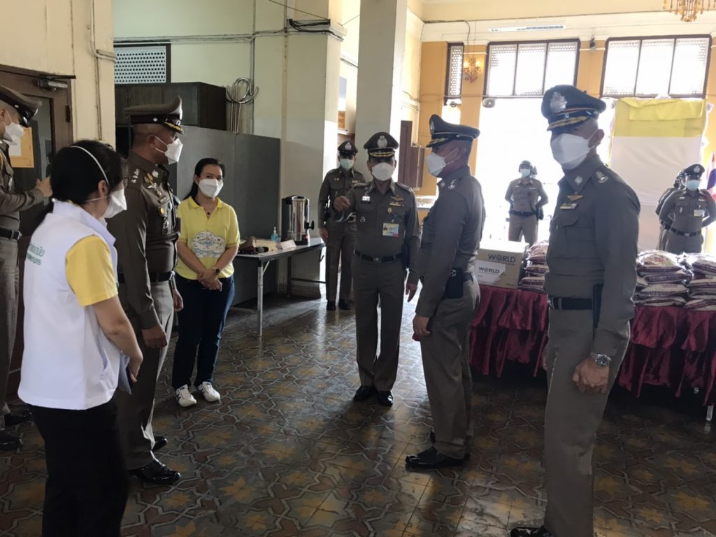 ได้เดินทางมาตรวจเยี่ยม พร้อมทั้งมอบสิ่งของ เพื่อเป็นกำลังใจแก่ข้าราชการตำรวจ สน.พระราชวัง และครอบครัว ที่ติดเชื้อไวรัสโคโรน่า 2019 (โควิด-19)