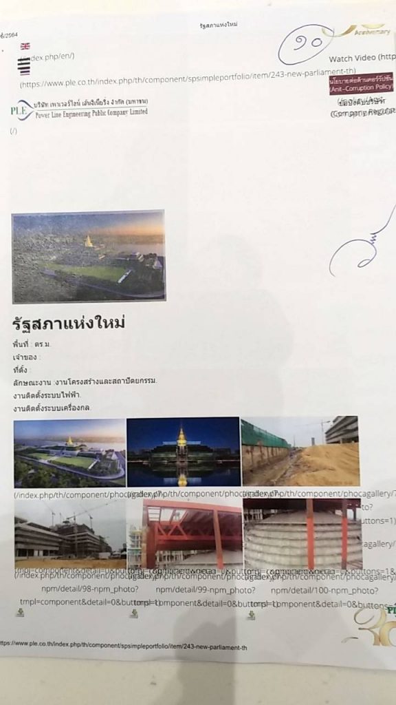 นายวิลาศ กล่าวอีกว่า ได้ไปร้องเรียนคณะกรรมการป้องกันและปราบปรามการทุจริตแห่งชาติ หรือ ป.ป.ช.ในเรื่องนี้ไว้แล้ว และหากคณะกรรมการพิจารณาตรวจสอบกรณีการขยายเวลาก่อสร้างอาคารรัฐสภาแห่งใหม่พร้อมอาคารประกอบ โดยมีว่าที่ร้อยตรีอาพัทธ์ สุขะนันท์ เป็นประธานไม่ทำงานอย่างตรงไปตรงมา ก็จะไปยื่นเรื่องให้ป.ป.ช.สอบสวนด้วยเช่นกัน จากนั้นนายวัชระ เพชรทอง ได้นำส่งเอกสารที่เกี่ยวข้อง และเอกสารของบริษัทเพาเวอร์ไลน์ เอ็นจิเนียริ่ง จำกัด(มหาชน)ที่นำมาจากเว็บไซด์ของบริษัทนี้แสดงผลงานว่าเป็นผู้สร้างอาคารรัฐสภาแห่งใหม่ส่งให้ว่าที่ร้อยตรีอาพัทธ์ เพื่อเปรียบเทียบกับสัญญาเลขที่ 116/2556 ที่สำนักงานเลขาธิการสภาผู้แทนราษฎรเซ็นกับบริษัทซิโน-ไทย เอ็นจิเนียริ่ง จำกัด(มหาชน) ว่าเป็นบริษัทเดียวกับที่เซ็นสัญญาหรือไม่ ถ้าไม่ใช่แสดงว่ามีการรับเหมาช่วงใช่หรือไม่ ผิดสัญญาการก่อสร้างใช่หรือไม่ และคณะกรรมการต้องปฏิบัติตามกฎหมายอย่างไร การทำอย่างนี้หรือที่เรียกว่าบริษัทมหาชนในตลาดหลักทรัพย์ มีธรรมาภิบาลทางการค้าสากลหรือไม่ ผู้ถือหุ้นรู้หรือไม่ เมื่อมีการทำผิดสัญญาข้อ 11 อย่างชัดเจนที่ก่อสร้างไม่เสร็จจนถึงวันนี้ นางพรพิศ เพชรเจริญ เลขาธิการสภาฯได้แจ้งความเอาผิดผู้รับจ้างตามกฎหมายหรือไม่ และเรียกค่าปรับตั้งแต่วันที่ 1 ม.ค.64 จนถึงวันนี้วันละ 12.28 ล้านบาทคิดเป็นเงิน 2,333.2 ล้านบาท (สองพันสามร้อยสามสิบสามล้านสองแสนบ้านถ้วน )หรือไม่