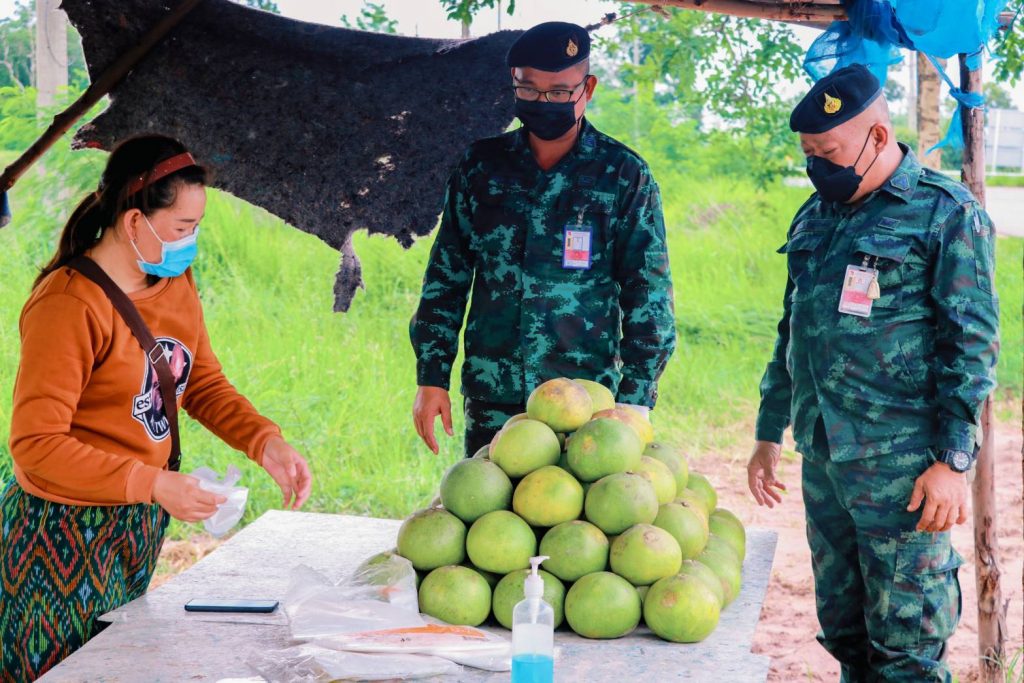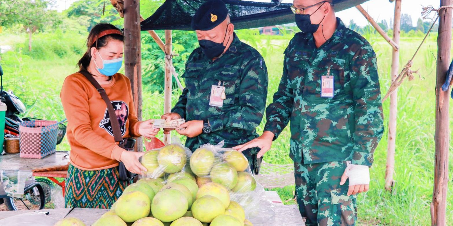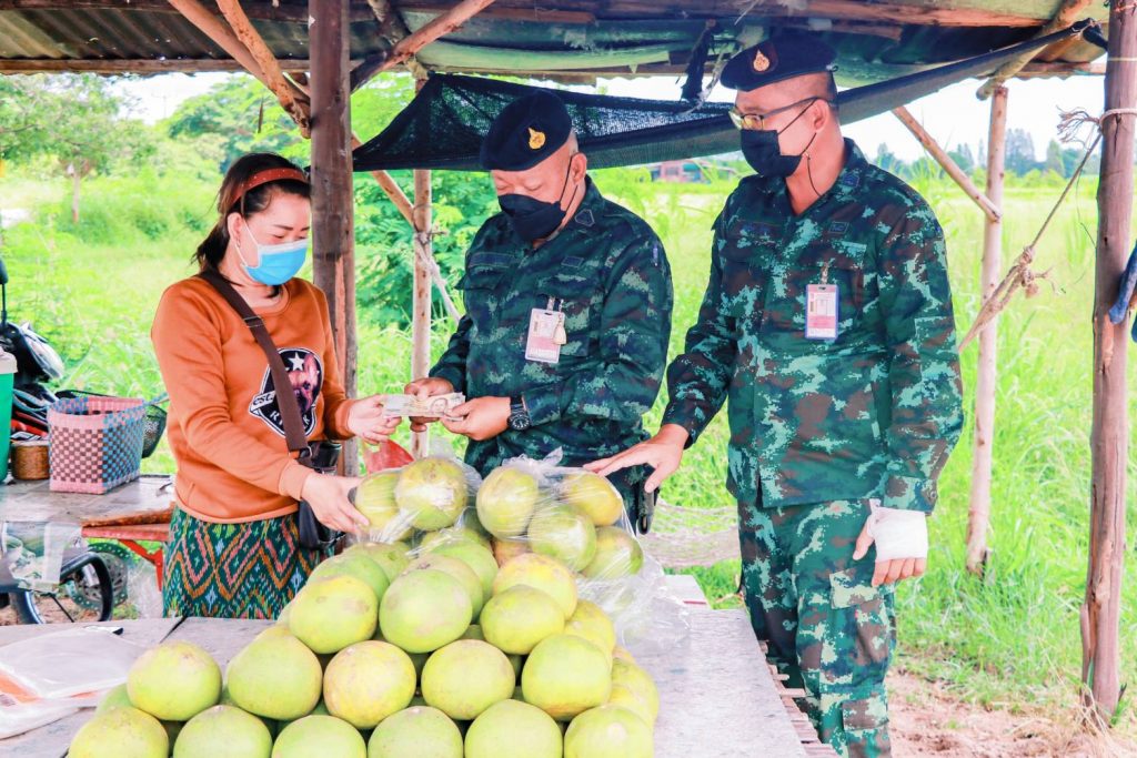 โดย ร.อ.อภิชาติ สิงห์สุวรรณ ผู้บังคับกองร้อยยานเกราะ กรมทหารราบที่ 8 ค่ายสีหราชเดโชไชย ต.ศิลา อ.เมือง จ.ขอนแก่น ได้สนองตอบนโยบาย ผบ.ร.8 และ กองทัพบกอย่างต่อเนื่อง นำกำลังพลลงพื้นที่ เข้ารับซื้อส้มโอ จาก นางแต๋ว หงส์ทอง จำนวน 100 กิโลกรัม เกษตรกรในพื้นที่ บ.นาคู ม.5 ต.หนองกุ อ.น้ำพอง จ.ขอนแก่น เพื่อให้เกษตรกรได้มีรายได้จุนเจือครอบครัว และการบรรเทาความเดือนร้อนในเบื้องต้น โดยให้หน่วยขึ้นตรงทุกหน่วยช่วยเหลือ อุดหนุน รับซื้อพืชผลทางการเกษตรจากเกษตรกรถึงในพื้นที่ โดยไม่ผ่านพ่อค้าคนกลาง เพื่อนำมาประกอบเป็นเมนูอาหารให้กับกำลังพลทหารกองประจำการของหน่วยได้รับประทาน และยังเป็นการช่วยเหลือเกษตรกรให้มีรายได้เพิ่ม ภายใต้สถานการณ์ที่มีการแพร่ระบาดของโรคไวรัสโควิด-19 “ ตามโครงการกองทัพบก.”น้องทหารอิ่มท้อง พี่น้องเกษตรกรอิ่มใจ” เพื่อช่วยบรรเทาความเดือดร้อน ของเกษตรกรที่ได้รับผลกระทบจากสถานการณ์การแพร่ระบาดโรคโควิด-19 (ระลอก 3)และไม่สามารถนำพืชผลทางการเกษตรที่ปลูกไว้ ออกจำหน่ายตามแหล่งรับซื้อหรือท้องตลาดได้ตามปกติ.