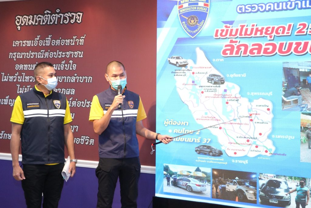 โดยได้พบว่าชุดแรกพบรถกระบะ ยี่ห้อฟอร์ด รุ่นเรนเจอร์ สีขาว เข้ามารับคนจำนวนส่วนใหญ่เหลือไว้ 2 คนแล้วจึงขับออกไป จึงได้แจ้งชุดปฏิบัติให้สกัดกั้นและสามารถจับได้ที่บริเวณ จุดตรวจอาเซียน ร้อย ตชด.134 ม.8 ต.หนองลู อ.สังขละบุรี