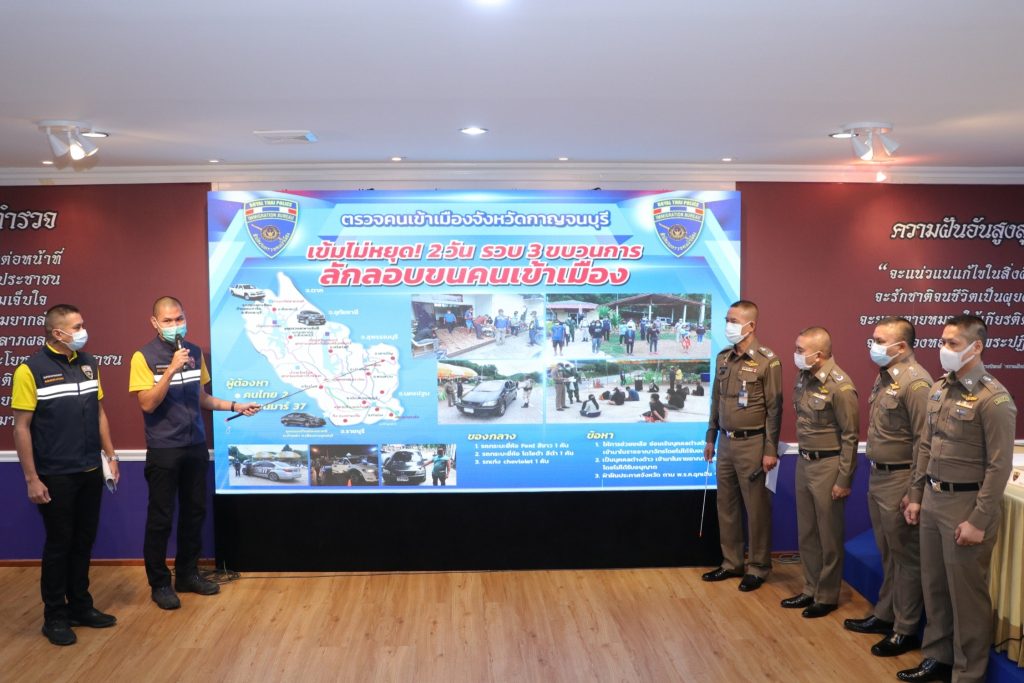 ขบวนการที่ 3 นาย THANT ให้ข้อมูลว่ารับการติดต่อจากบุคคลหนึ่ง ให้ขับรถรับช่วงคนเมียนมาไม่มีหนังสือเดินทาง จำนวน 9 คน ไปส่งที่บริเวณใกล้ด้านพุร้อน โดยให้ค่าจ้างหัวละ 1,000 บาท ตนตัดสินใจรับงานนี้โดยไปรอรับที่จุดนัดพบ ถนนเลี่ยงเมืองกาญจนบุรี ซึ่งมีรถเข้ามาส่งคนให้กับนาย THANT จำนวน 2 ชุด จนกระทั่งรุ่งเช้าจึงได้ออกเดินทางและถูกเจ้าหน้าที่จับกุมตัว สอบถามคนต่างด้าวที่โดยสารมาด้วยให้ข้อมูลว่าลักลอบทำงานอยู่ อ.เมือง จ.สมุทรสาคร แต่ช่วงนี้ได้รับผลกระทบโรงงานที่ตนเองลักลอบทำงานอยู่ปิดตัวเพราะติดโควิด ช่วงนี้ไม่มีงานทำจึงเดินทางกลับบ้านก่อน