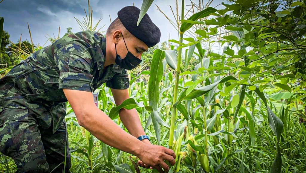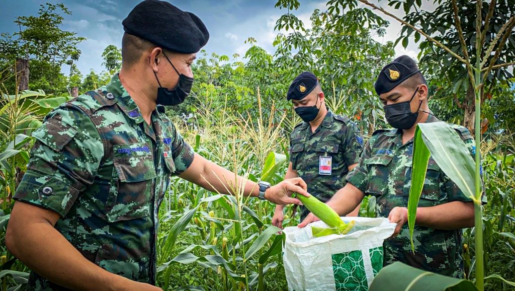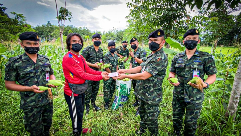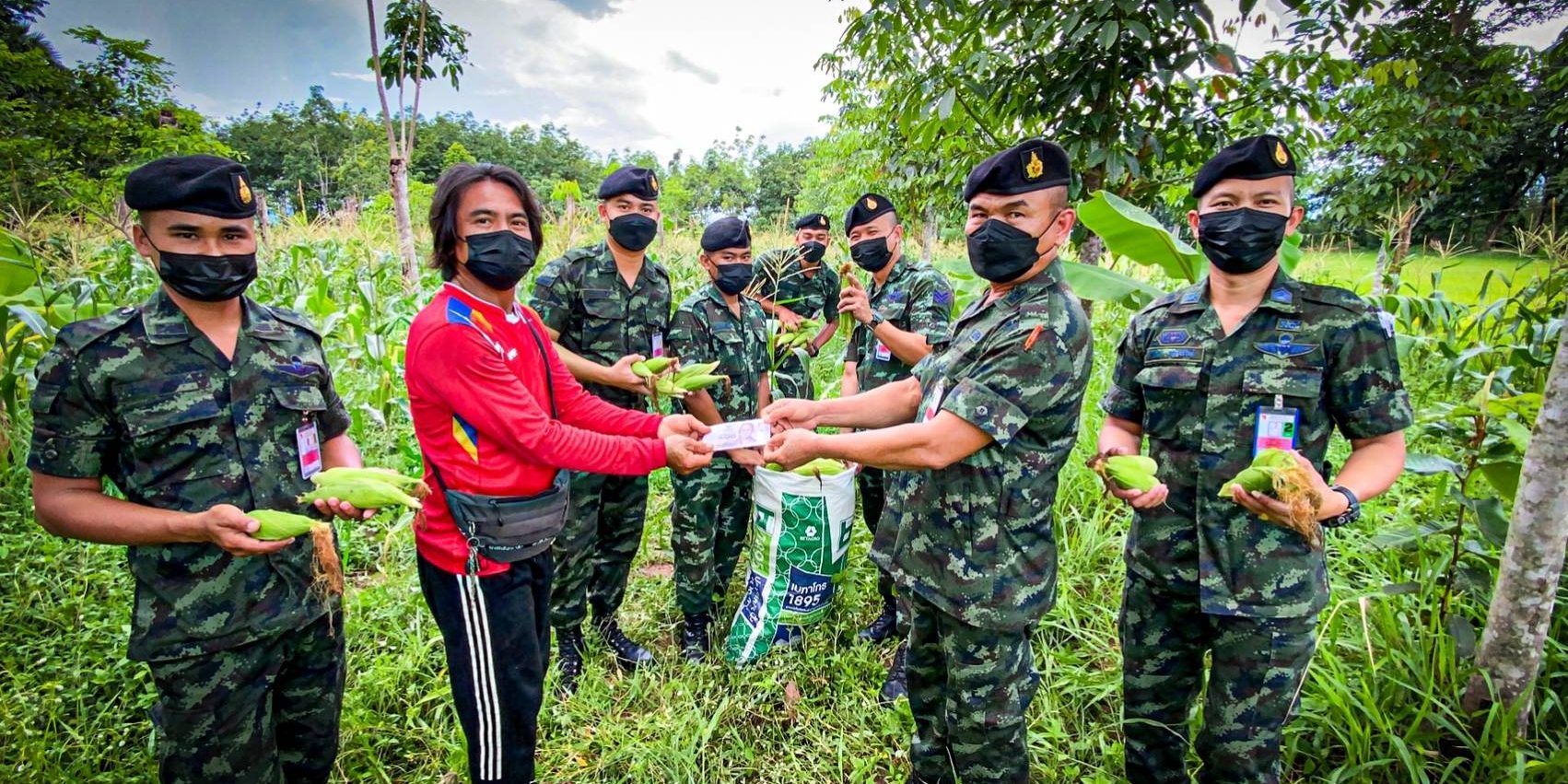 โดย ร.อ.สุนทร หัสโรค์ ผู้บังคับกองร้อยลาดตะเวน และเฝ้าตรวจ กรมทหารราบที่ 8 ค่ายสีหราชเดโชไชย ต.ศิลา อ.เมือง จ.ขอนแก่น สนองตอบนโยบาย ผบ.ร.8 และ กองทัพบกอย่างต่อเนื่อง นำกำลังพลลงพื้นที่ เข้ารับซื้อไปเข้ารับข้าวโพด จากนายอำนาจ อินทรโถ จำนวน 250 กิโลกรัม เกษตรกรในพื้นที่ บ้านคุ้มป่าพร้าว อ.บ้านไผ่ จ.ขอนแก่น ซึ่งหน่วยรับซื้อพืชผลทางการเกษตรจากเกษตรกรถึงในพื้นที่ โดยไม่ผ่านพ่อค้าคนกลาง เพื่อนำมาประกอบเป็นเมนูอาหารให้กับกำลังพลทหารกองประจำการของหน่วยได้รับประทาน และยังเป็นการช่วยเหลือเกษตรกรให้มีรายได้เพิ่ม ภายใต้สถานการณ์ที่มีการแพร่ระบาดของโรคไวรัสโควิด-19 “ ตามโครงการกองทัพบก.”น้องทหารอิ่มท้อง พี่น้องเกษตรกรอิ่มใจ” เพื่อช่วยบรรเทาความเดือดร้อน ของเกษตรกรที่ได้รับผลกระทบจากสถานการณ์การแพร่ระบาดโรคโควิด-19 (ระลอก 3) และไม่สามารถนำพืชผลทางการเกษตรที่ปลูกไว้ ออกจำหน่ายตามแหล่งรับซื้อหรือท้องตลาดได้ตามปกติ